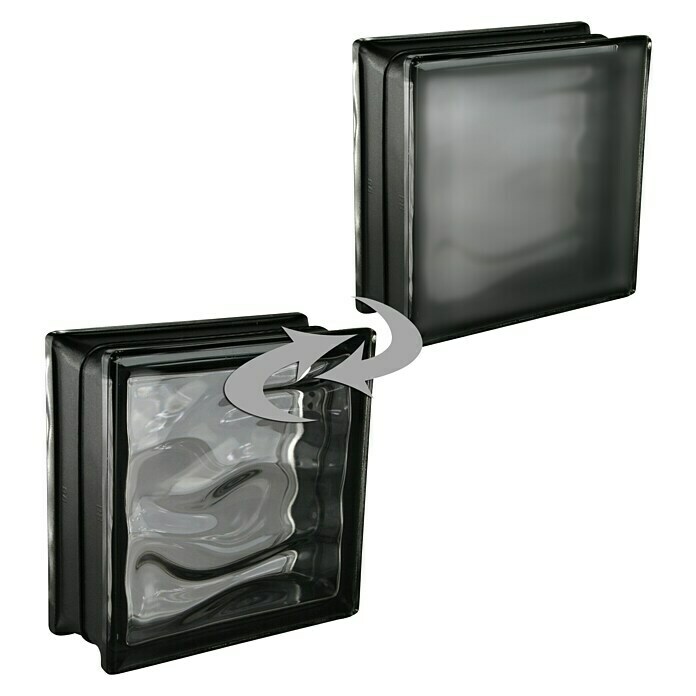 Design Glasbaustein Vollsicht Reflex Schwarz - 19x19x8 Cm (6 Stück)