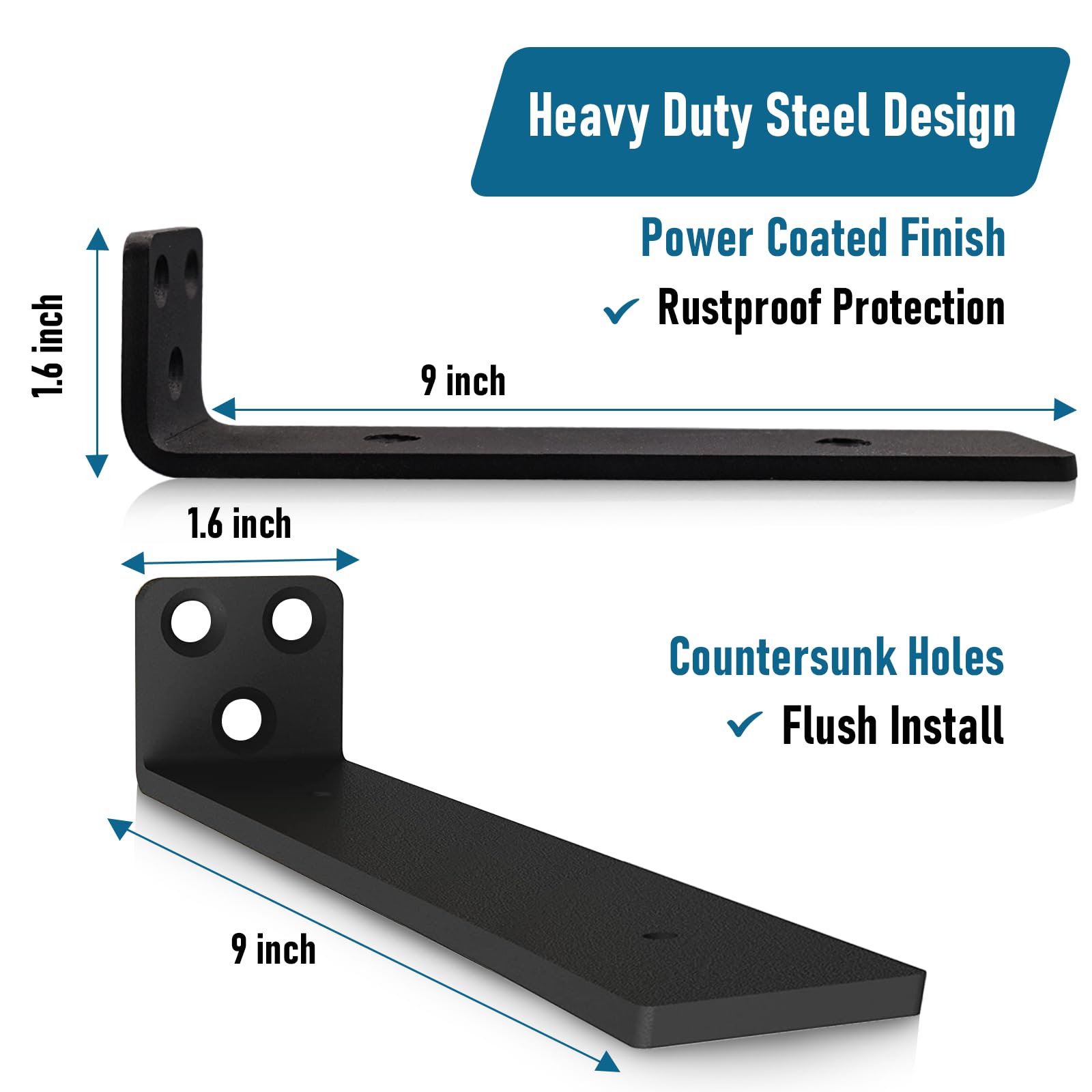 Brauchst du stabile Regale in Garage, Keller oder Werkstatt? Diese robusten Regalhalterungen aus massivem Stahl sind die Lösung! Mit 438 mm Länge und 4 mm Materialstärke halten sie problemlos bis zu 200 kg pro Paar aus. Die bogenförmige Verstärkung sorgt für zusätzliche Stabilität und Langlebigkeit. Die schwarze Hochtemperatur-Beschichtung macht die Halterungen rost- und korrosionsbeständig. Im Lieferumfang sind alles für die Montage enthalten: 2 Halterungen, 8 Betonanker und 16 Schrauben. Die abgerundeten Ecken machen die Handhabung sicher und die großen Aufhängebohrungen erleichtern die Installation. Perfekt für schwere Regale in Garage, Werkstatt, Keller oder auch in der Küche. Einfach an der Wand befestigen, das Regalbrett drauflegen und schon hast du stabilen Stauraum für schwere Gegenstände. Qualität, die wirklich hält!