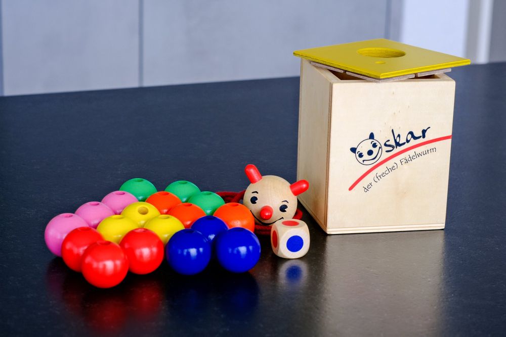Die Perlen gleiten mühelos auf Edelstahlstäben - super für die Entwicklung der Feinmotorik. Perfekt für Vorschule, Kindergarten oder zu Hause.