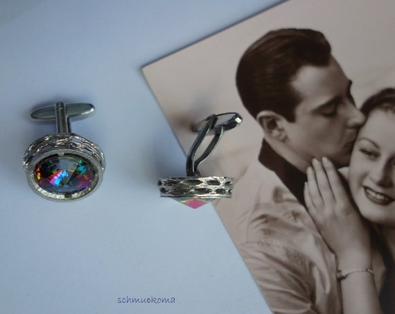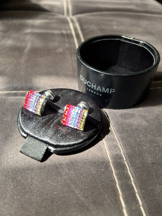 Zeige Farben mit diesem stylischen Regenbogen-Set! Enthält 1 Paar Manschettenknöpfe (22,5x17,5mm) und 1 Krawattenklammer (18,5x55x17,5mm) in bunten Streifen. Aus hochwertiger Legierung - langlebig und nicht verblassend.