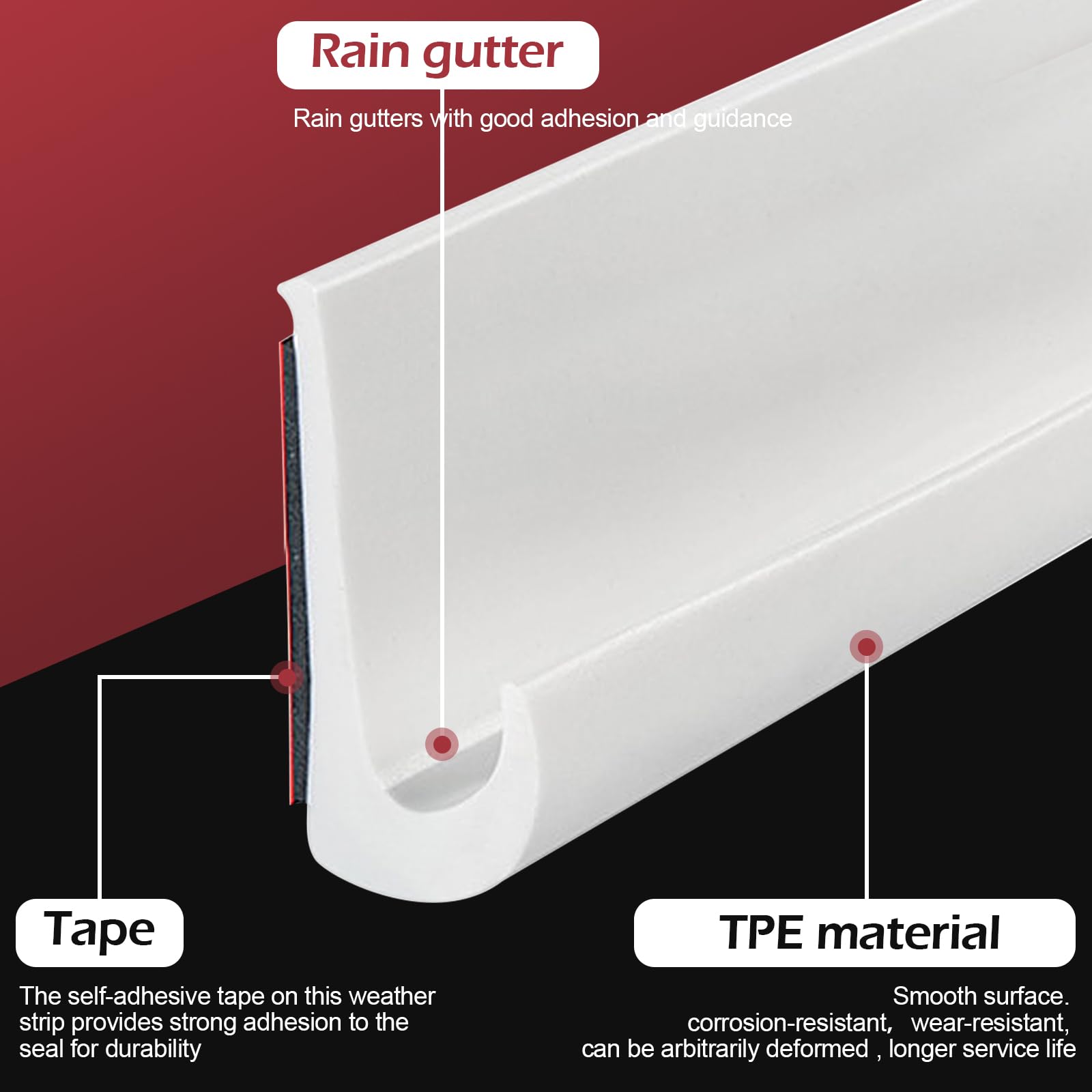 Schluss mit tropfendem Regenwasser! Diese J-förmige Regenrinne aus PVC leitet Wasser einfach und effektiv ab. Mit starkem Klebeband auf der Rückseite - einfach messen, schneiden, Schutzfolie abziehen und auf saubere, trockene Flächen drücken. Hält an Autotüren, Wohnmobilen, Booten und sogar an Hausdächern. In verschiedenen Längen von 1-20 Meter erhältlich. Korrosionsbeständig und extrem langlebig. Einfache Lösung für ein lästiges Problem!