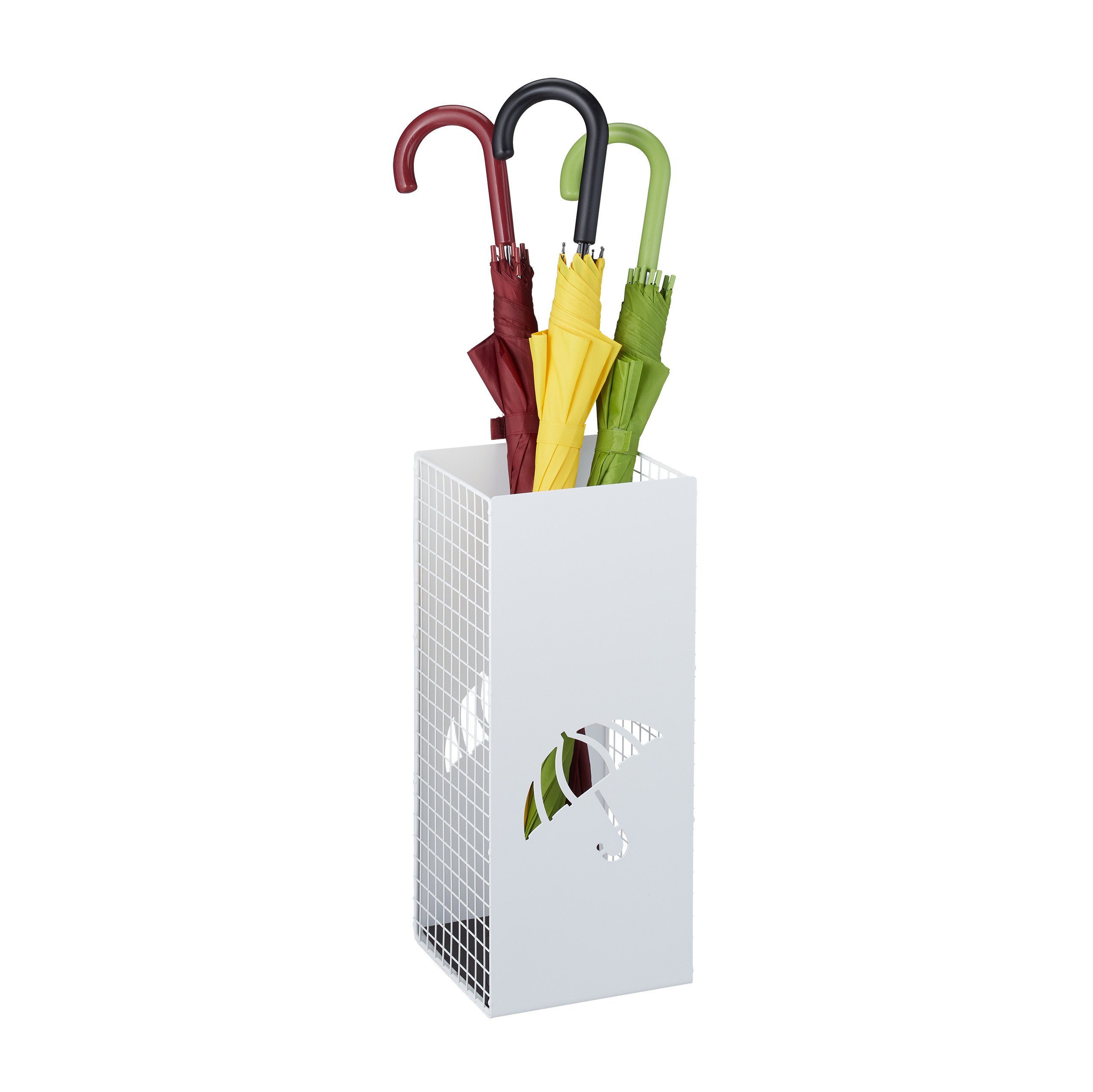 Das coole Hohlmuster-Design lässt die Schirme schnell trocknen, und die beiden Griffe machen das Tragen super easy. Aus robustem Metall mit wasserfester Beschichtung – rostfrei und langlebig. Platz für ca. 4–8 Schirme, je nach Größe.