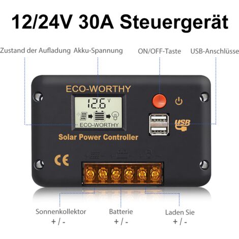Für alle Solar-Fans: Dieser Qaurora Laderegler ist genau das Richtige für deine Insel-Solaranlage! Mit 20A Leistung und sowohl für 12V als auch 24V Systeme geeignet. Das coole Feature: Zwei USB-Anschlüsse mit 5V Ausgang - perfekt zum Laden von Handy, Tablet & Co. Der Regler hat Timer und Lichtsensor, also ideal für Solar-Beleuchtung. Mit PWM-Technologie für effizientes Laden und allen wichtigen Schutzfunktionen - Überlastung, Blitzschutz, Kurzschluss, alles dabei. Das LCD-Display zeigt dir alle wichtigen Daten an. Einfach Batterie, Solarpanel und Verbraucher anschließen - schon läuft's! Wichtig: Nur für Blei-Säure-Batterien (OPEN, AGM, GEL), nicht für Lithium. Die MOS-Schaltung reduziert Spannungsverluste um 50%. Bei 133x70x32mm kompakt und praktisch. Perfekt für Gartenhaus, Wohnmobil oder Boot. Einfach installieren und saubere Solarenergie nutzen! Deine Batterie wird's dir danken mit langer Lebensdauer.