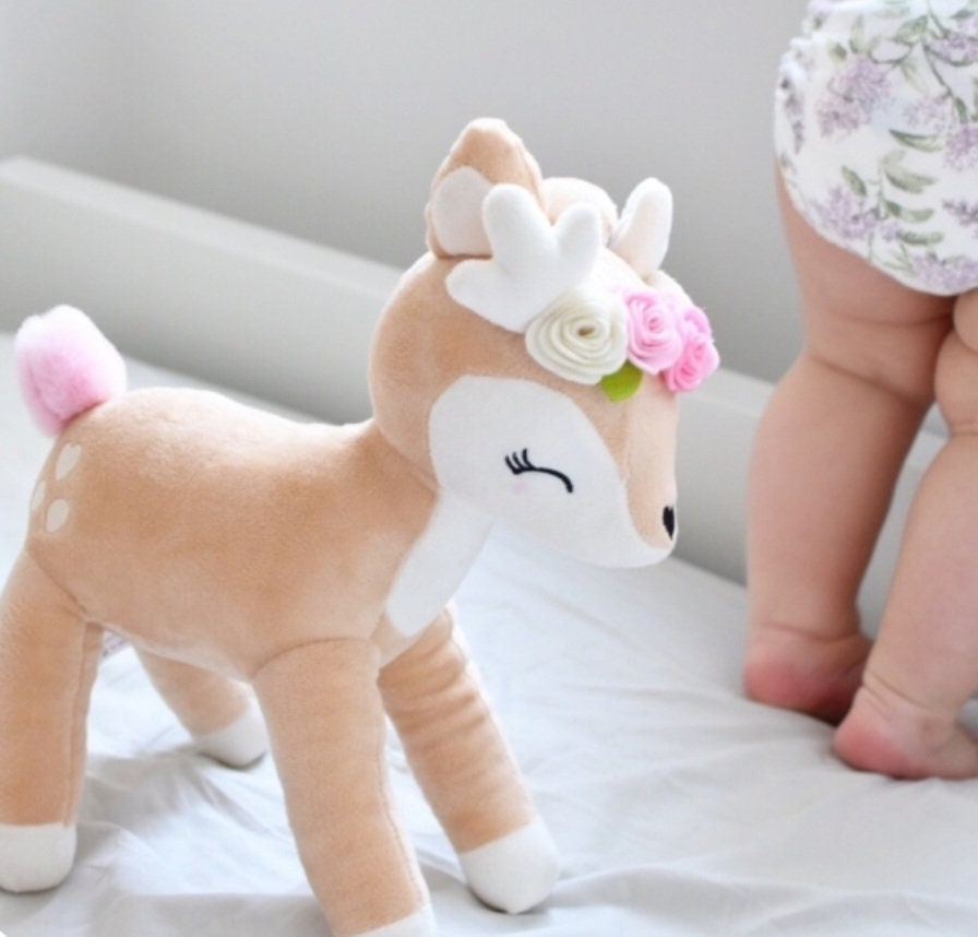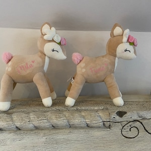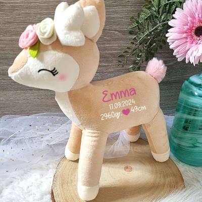 Oh wie süß! Dieses kuschelige Reh mit seinem niedlichen rosa Blumenkranz ist das perfekte Geschenk für kleine Mädchen - und das Beste: Du kannst es persönlich mit Namen und Geburtsdatum bedrucken lassen! Mit 35 cm Größe ist es ideal für kleine Kinderhände und passt auch perfekt als Topping auf die Schultüte. Aus CE-zertifiziertem Plüsch gemacht, der super weich und kuschelig ist und sogar bei 30°C waschbar. Der Aufdruck ist ganz weich und kratzt nicht wie manche Stickereien. Ab Geburt geeignet und absolut sicher für die Kleinsten. Ob zur Geburt, Taufe oder Einschulung - dieses personalisierte Reh wird zu einem ganz besonderen Begleiter. Jedes Reh wird von Hand mit deinem Wunschnamen versehen - so wird es ein echtes Unikat! Ein Geschenk, das nicht nur niedlich aussieht, sondern auch emotionalen Wert hat. Da strahlen nicht nur die Kinderaugen!