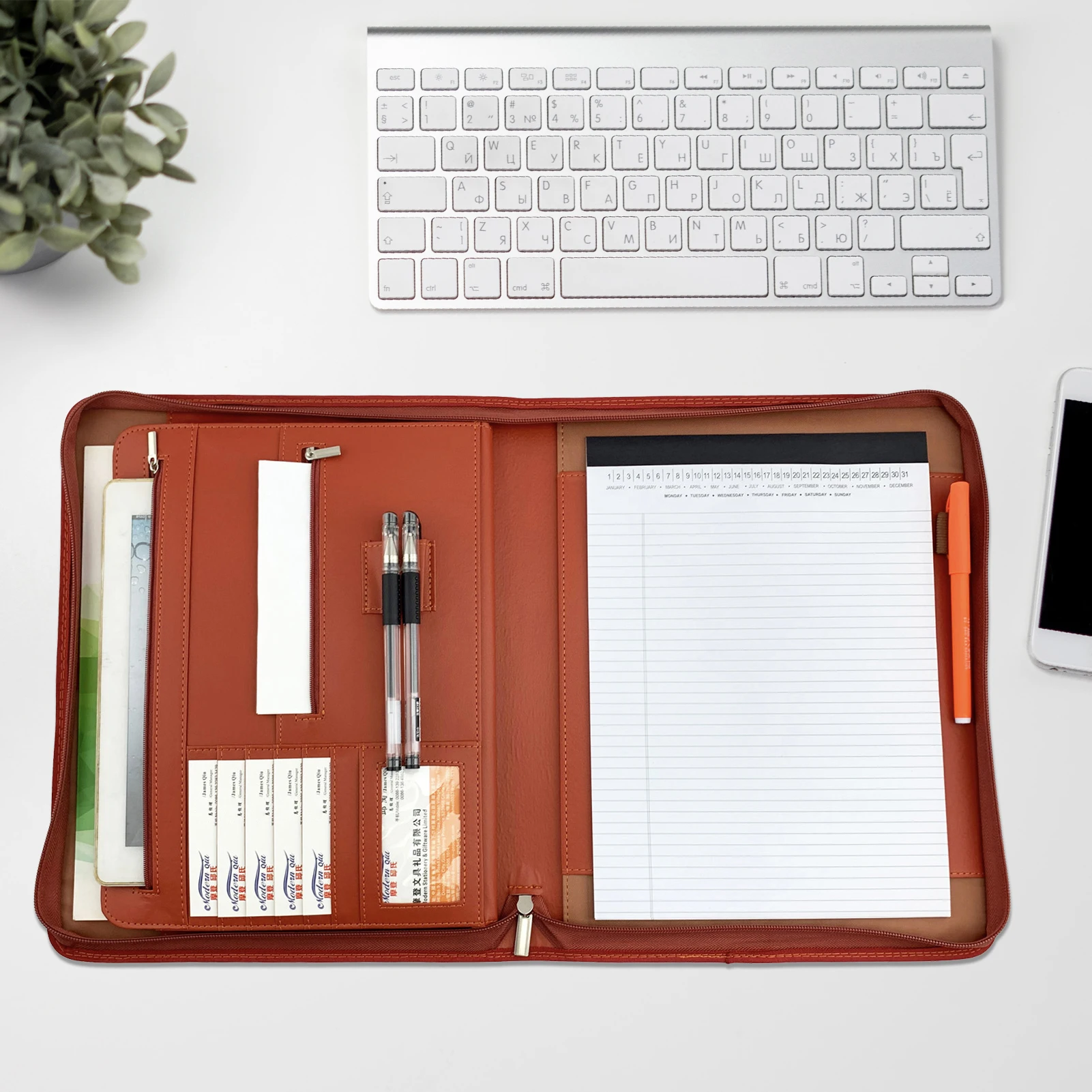 Dieses Padfolio ist dein perfekter Begleiter für jeden Business-Termin! Mit dem stylischen PU-Leder in Braun oder Rosa machst du garantiert eine gute Figur beim Vorstellungsgespräch oder Meeting. In der praktischen A4-Größe (25,5 x 33 x 3 cm) findest du Platz für alle wichtigen Unterlagen - Lebenslauf, Notizblock, Stifte und sogar dein Tablet. Der integrierte Taschenrechner ist super praktisch für schnelle Berechnungen. Das zeitlose Design mit glattem Reißverschluss sieht nicht nur professionell aus, sondern hält auch jeden Tag aufs Neue stand. Mit 700 Gramm ist die Mappe robust aber nicht zu schwer. Perfekt für Berufseinsteiger, Studenten oder erfahrene Geschäftsleute - hier bleibt alles organisiert und griffbereit!