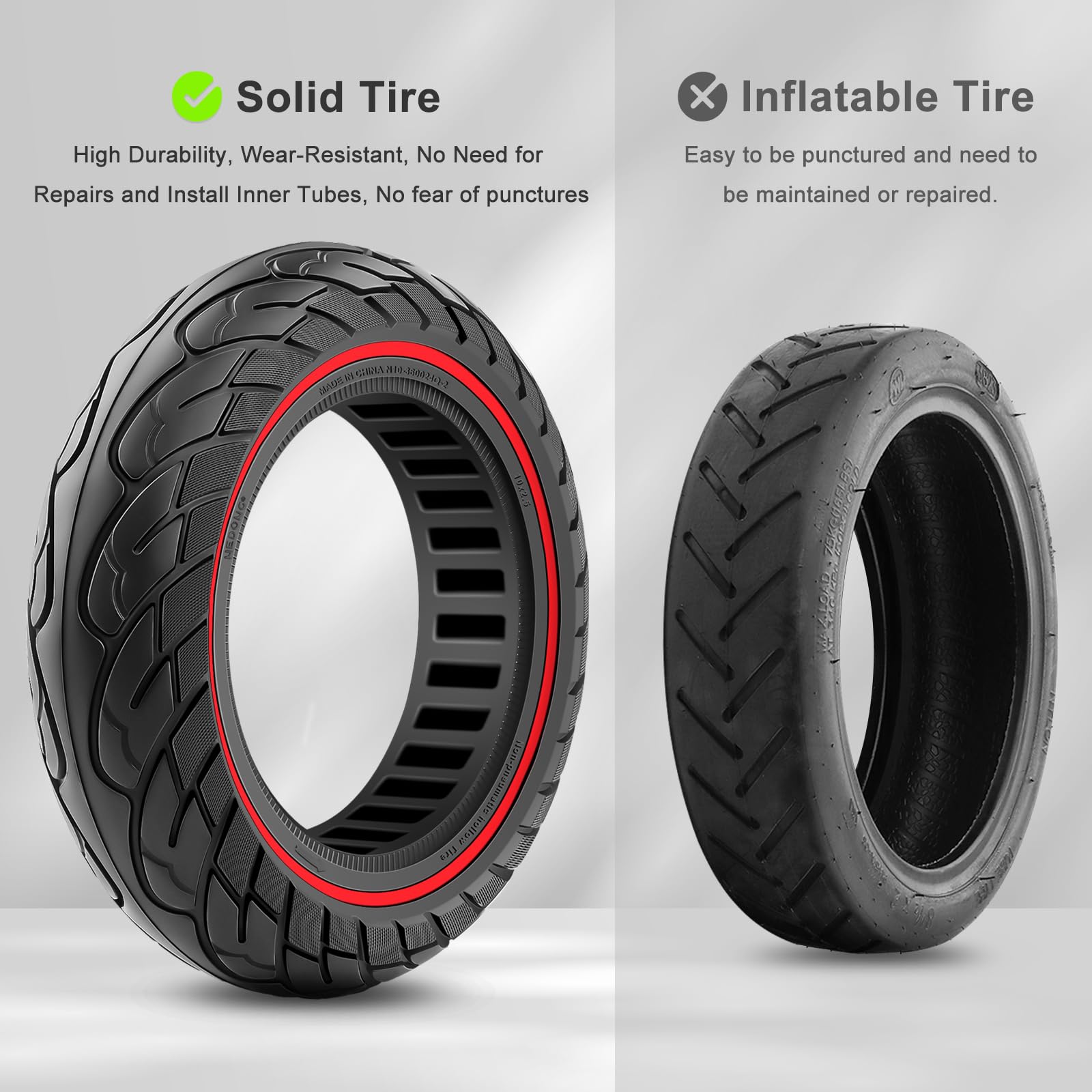Neue Reifen für deinen Elektroroller? Hier bist du richtig! Dieser 10-Zoll-Reifen in der Größe 10x2.125 gibt deinem Scooter neuen Grip und Sicherheit. Aus hochwertigem Gummi gefertigt, ist er robust und langlebig. Der schlauchlose Aufbau macht die Montage einfacher und du hast weniger Probleme mit Platten. Wichtig: Elektroroller sind in Deutschland nur auf privatem Gelände erlaubt - bitte beachten! Der Reifen wiegt etwa 520g und kommt in klassischem Schwarz. Perfekter Ersatz für abgenutzte Reifen oder wenn du einfach mal was Neues brauchst. Einfach den alten Reifen runter, neuen drauf - und schon kannst du wieder losrollen! Aber immer schön auf dem Privatgrundstück bleiben, okay?