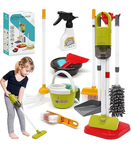 Kleine Helfer ganz groß! Dieser Tachan Reinigungswagen lässt Kinderherzen höher schlagen. Das komplette Set inklusive Wagen mit Rädern, Besen, Kehrschaufel, Eimer und Mopp fördert das fantasievolle Rollenspiel. Kinder ab 3 Jahren lernen spielerisch, wie wichtig Sauberkeit ist und können Mama und Papa beim Putzen nachahmen. Aus sicheren, hochwertigen Materialien gefertigt - alle Teile entsprechen den strengen Sicherheitsstandards. Mit 56x30x19 cm perfekt für kleine Hände. Fördert Kreativität, Zusammenarbeit und motorische Fähigkeiten. Einfach auspacken und losspielen - keine Montage erforderlich!