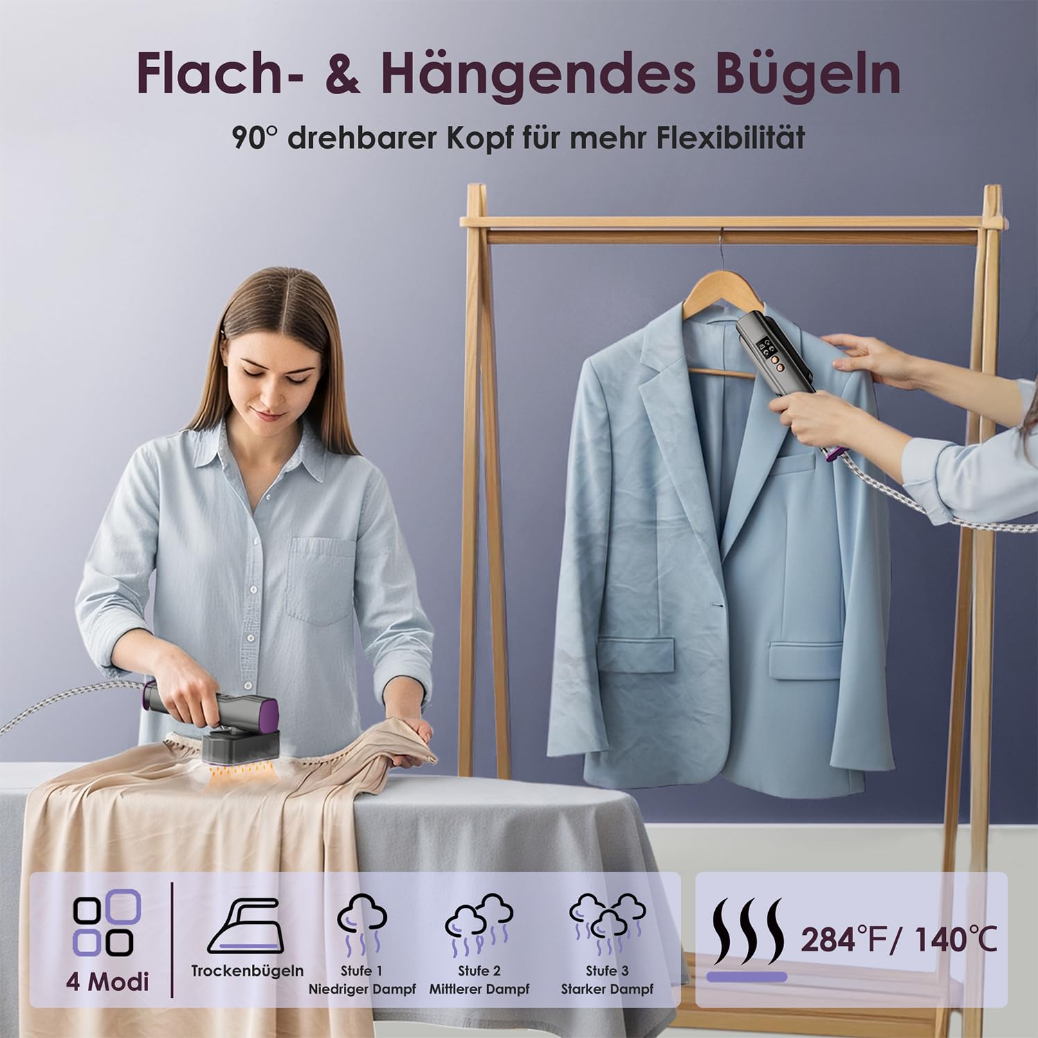 Nie wieder zerknitterte Klamotten! Dieser Dampfglätter von VIWAVE heizt in nur 15 Sekunden auf - mega schnell! 1200W Power, 22g/min Dampf - macht selbst hartnäckige Falten weg. 4 Modi (trocken + 3 Dampfstufen), LED-Anzeige. Passt sich automatisch an 100-240V an - perfekt für Reisen! Keramik-Sohle, 90° drehbar - auch für Kragen und Knopfleisten. Nur 700g leicht, inklusive Tasche. 100ml Wassertank reicht für ein komplettes Outfit. Endlich professionelles Bügeln für zu Hause und unterwegs! Einfache Bedienung, stylisches Design. Mach deine Kleidung in Minuten perfekt - ohne Stress!