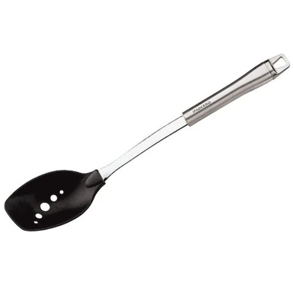 Kochst du gerne Reis? Dann kennst du das Problem: Der Reis klebt am Löffel oder lässt sich schlecht portionieren. Dieser Paderno Reislöffel aus 100% Edelstahl ist die Lösung! Mit 26,4 cm Länge ist er genau die richtige Größe - nicht zu kurz, nicht zu lang. Die spezielle Form der Schaufel ist ideal zum Portionieren von Reis, aber auch für andere Getreide oder Hülsenfrüchte. Aus robustem Edelstahl gefertigt, hält dieser Löffel ewig - keine Verformungen, kein Rosten, einfach nur langlebige Qualität. Die Aufhängebohrung am Griffende ist super praktisch für die Aufbewahrung - einfach an den Haken und fertig. Perfekt für die tägliche Küchenarbeit, ob für Familie oder größere Runden. Der Löffel liegt gut in der Hand und die kurze, kompakte Form macht das Schöpfen zum Kinderspiel. Ein einfaches, aber unverzichtbares Küchenutensil, das dir das Leben leichter macht. Seit Jahren ein Klassiker in Profi-Küchen - und jetzt auch in deiner!