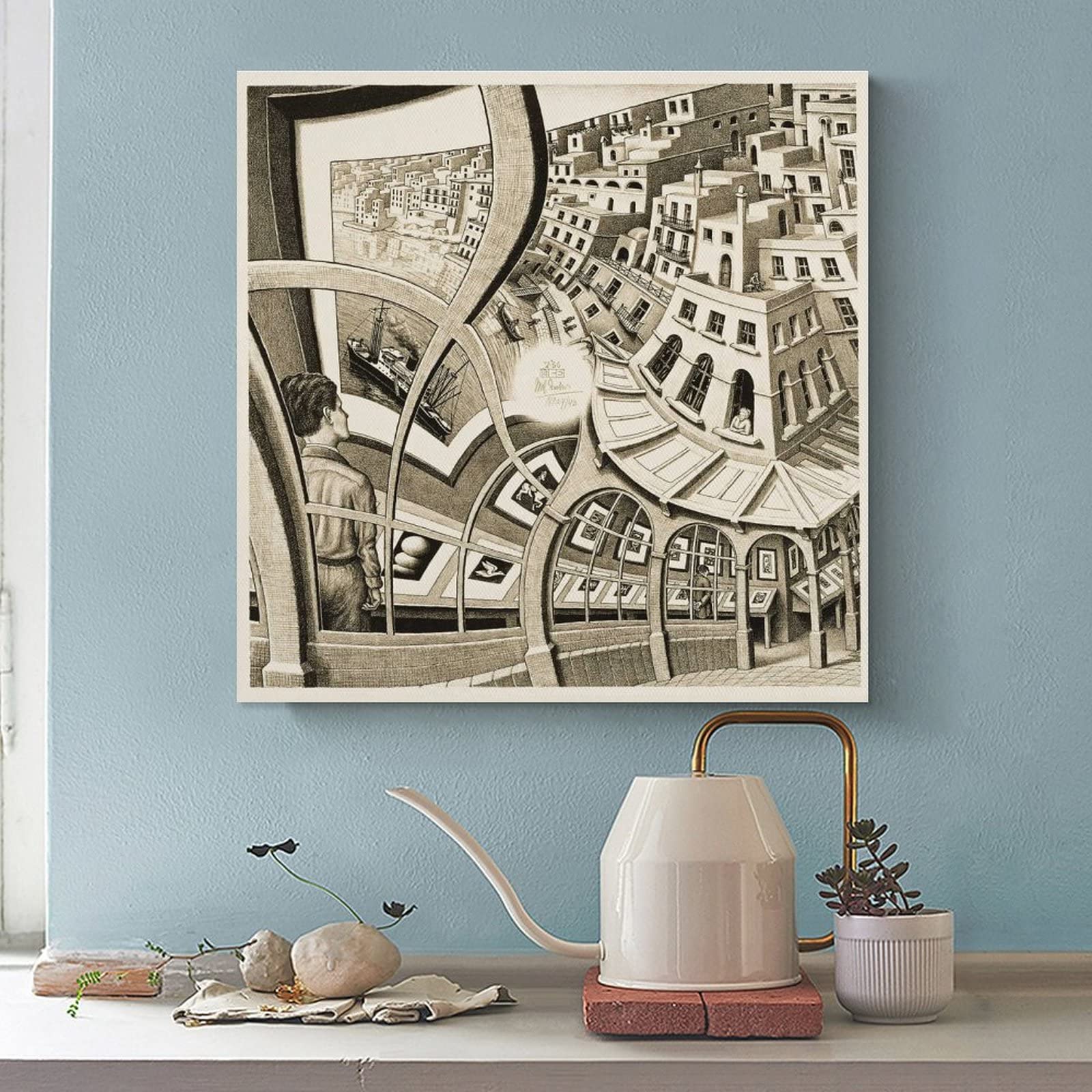 M.C. Escher Relativität Leinwanddruck 50x50cm - Kunstposter Für Wohnzimmer & Schlafzimmer