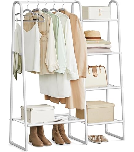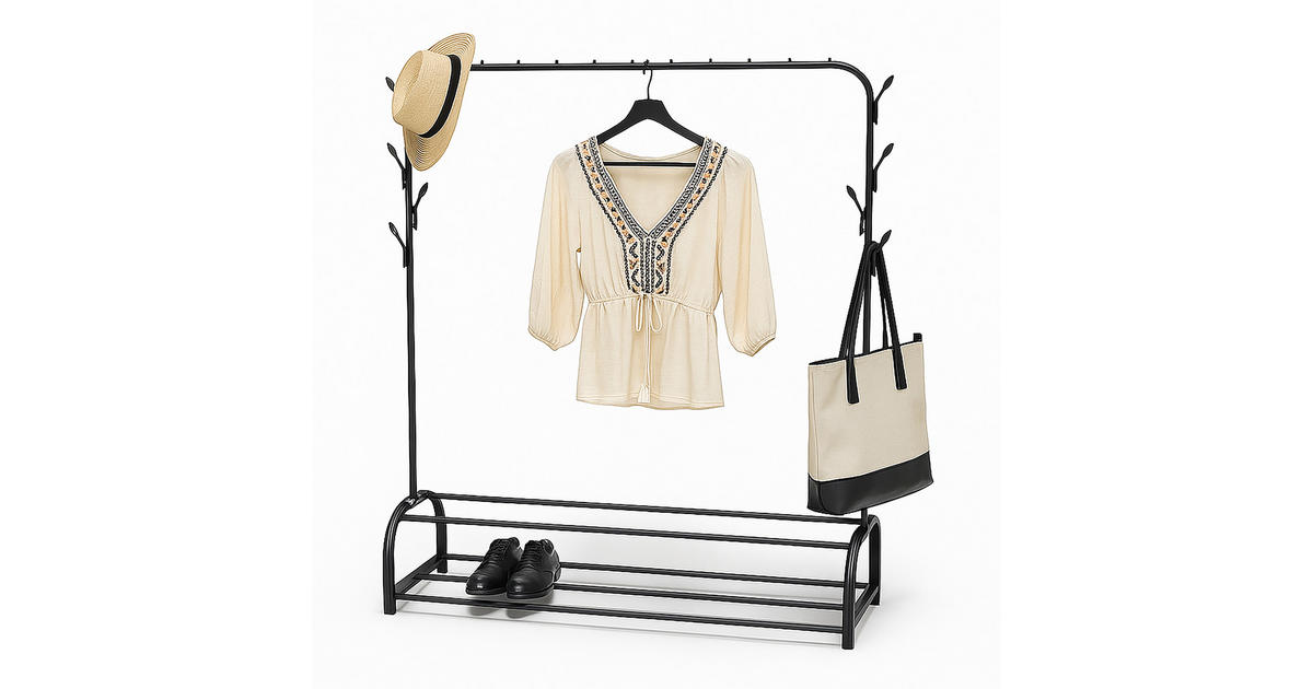 Endlich Ordnung im Zimmer! Der Relaxdays Kleiderständer ist dein neuer bester Freund gegen Kleiderberge. Mit Kleiderstange, 2 Ablagen und 8 Haken hast du alles unter Kontrolle. Jacken, Hosen, T-Shirts - alles findet seinen Platz. Und die Schuhe kommen einfach auf die Ablage. Die Metallkonstruktion ist super stabil (trägt bis 30 kg!) wiegt selbst aber nur 2,8 kg. Maße: 158 x 110 x 40 cm. Montage ist kein Problem - die Anleitung erklärt alles Schritt für Schritt. Sieht schlicht aus und passt in jedes Zimmer!