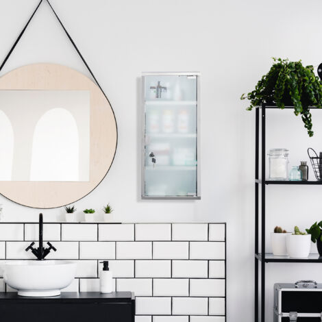 Ordnung und Sicherheit für Ihre Hausapotheke! Dieser praktische Medizinschrank für die Ecke bietet platzsparend Stauraum für Medikamente, Verbandsmaterial und Erste-Hilfe-Utensilien. Die abschließbare Tür mit Magnetverschluss schützt neugierige Kinder vor gefährlichen Substanzen. Aus hochwertigem Edelstahl gefertigt mit einer dekorativen Milchglastür, die das Design modern und clean wirken lässt. Mit zwei geräumigen Fächern für übersichtliche Organisation. Einfache Montage an der Wand inklusive Befestigungsmaterial und zwei Schlüsseln. Perfekt für Badezimmer, Flur oder auch im Büro. Maße: 30x30x17,5 cm - ideal für beengte Platzverhältnisse. Deutsche Markenqualität von Relaxdays mit über 10 Jahren Erfahrung im Haushaltsbereich. Endlich alles griffbereit und sicher verstaut!