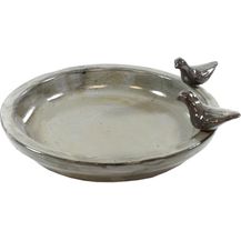 Einladend für alle gefiederten Freunde! Diese wunderschöne Vogeltränke aus Gusseisen im antiken Gold-Design ist ein echter Hingucker in jedem Garten. Mit den Maßen 21x15,5x12,5cm bietet sie genug Platz für Vögel zum Trinken und Baden. Die herzförmige Halterung mit zwei niedlichen Vögeln und dem Welcome-Schriftzug sieht einfach bezaubernd aus. Einfach mit dem Haken aufhängen - ob im Garten, auf der Terrasse oder dem Balkon. Im Sommer als Tränke, im Winter als Futterstelle verwendbar. Aus robustem Gusseisen gefertigt, hält sie vielen Witterungen stand. Wichtig: Regelmäßig Wasser wechseln und mit heißem Wasser reinigen (kein Spülmittel!). Am besten in 1,60m Höhe und 3m von Büschen entfernt aufhängen, um die Vögel vor Katzen zu schützen. Eine tolle Ganzjahres-Deko die Leben in deinen Garten bringt!