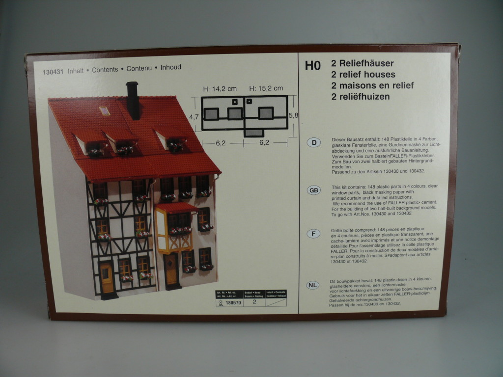 Perfekt für deine Modelleisenbahn-Landschaft! Dieses FALLER Set mit 6 Reliefhäusern ist ideal, um platzsparend realistische Häuserzeilen an den Rückwänden deiner Anlage zu gestalten. Die halbiert baubaren Eck- und Wohngebäude sehen täuschend echt aus und sind super einfach zu montieren. Mit den Artikeln 130431 und 130432 kannst du die Häuserzeilen sogar noch verlängern. Die Qualität ist typisch FALLER - sauber verarbeitet und detailgetreu. Ob für Stadtlandschaften oder Vororte - diese Häuser bringen sofort mehr Tiefe und Realismus in deine Anlage. Einfach zusammenbauen, anmalen wenn gewünscht und an die Rückwand stellen. Sieht aus wie eine komplette Straße, braucht aber nur halb so viel Platz! Für alle Modelleisenbahn-Fans ab 14 Jahren ein absolutes Muss. Macht deine Anlage gleich viel professioneller!