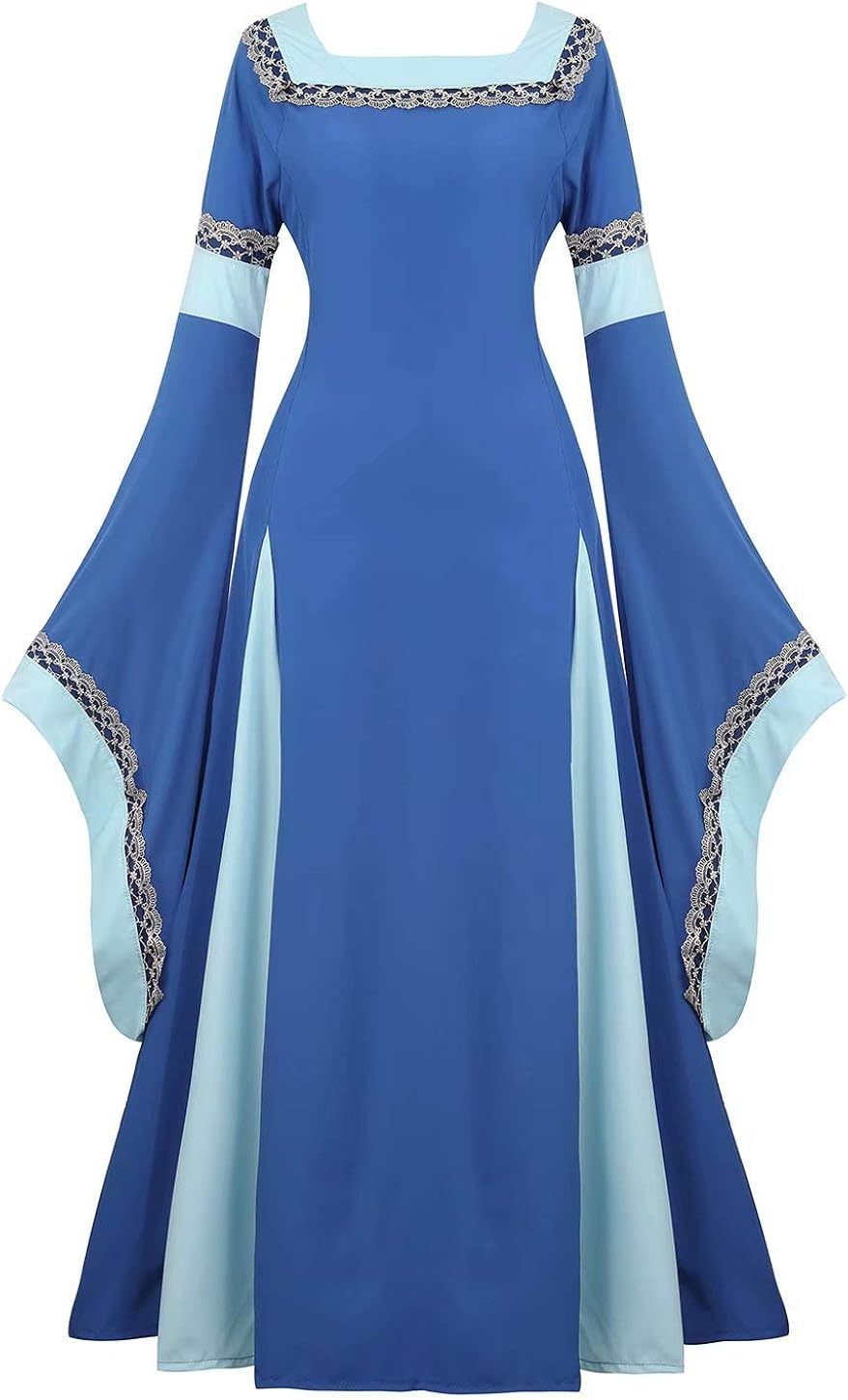 Fühl dich wie eine echte Prinzessin aus dem Mittelalter! Dieses Renaissance-Kleid mit wunderschönen Trompetenärmeln und bodenlanger Weite ist ein absoluter Hingucker. Das schnürbare Mieder betont deine Taille, während die glockenförmigen Ärmel für royalen Flair sorgen. 👑
