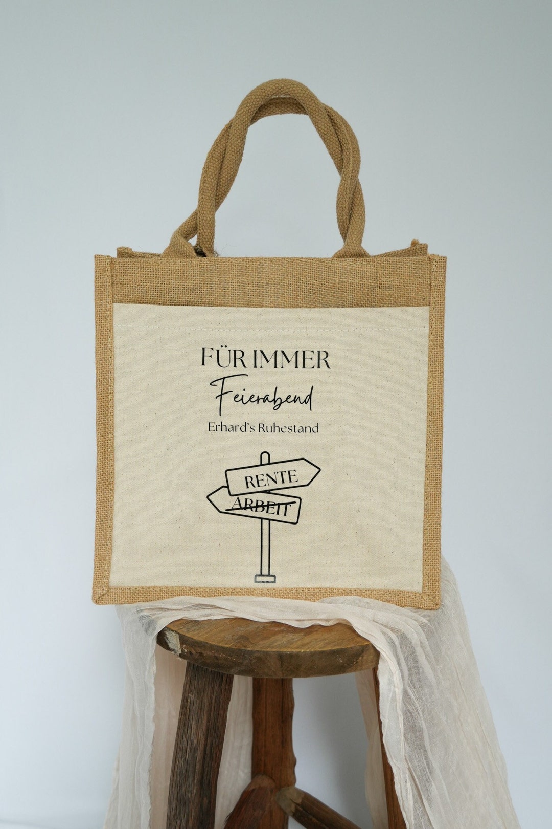 Das perfekte Abschiedsgeschenk für den Renteneintritt! Diese lustige Jutetasche mit dem Spruch 'Rente 2025 - Für diese Tasche habe ich sehr lange gearbeitet!' bringt garantiert ein Lächeln ins Gesicht. Aus nachhaltiger Jute und Baumwolle gefertigt - umweltbewusst und robust. Perfekt als Geschenkverpackung für das eigentliche Abschiedsgeschenk oder als alleiniges Präsent. Stylisch und praktisch - deine Kollegin wird sie im Ruhestand oft nutzen! Ob beim Einkaufen, auf Reisen oder für Ausflüge - dieser Beutel ist ein treuer Begleiter. Zeig deine Wertschätzung für viele gemeinsame Arbeitsjahre. Ein humorvolles und durchdachtes Geschenk, das in Erinnerung bleibt. Personalisierbar für einen noch persönlicheren Touch. Mach den Renteneintritt zu einem unvergesslichen Moment - mit diesem besonderen Geschenk!