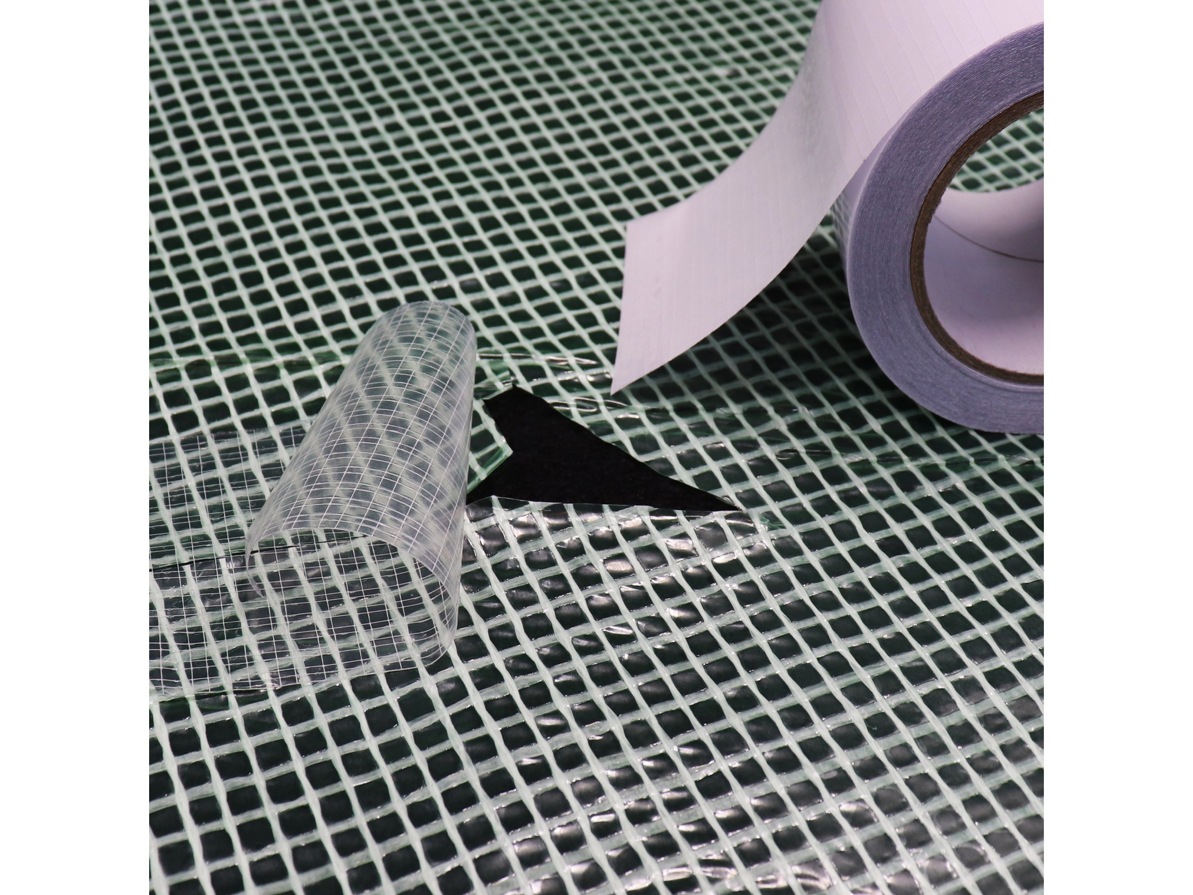 Nicht nur für Gewächshäuser - repariert auch Regenmäntel, Wasserleitungen, Planen und vieles mehr. Einfach abziehen, aufkleben, festdrücken - hält bombenfest!