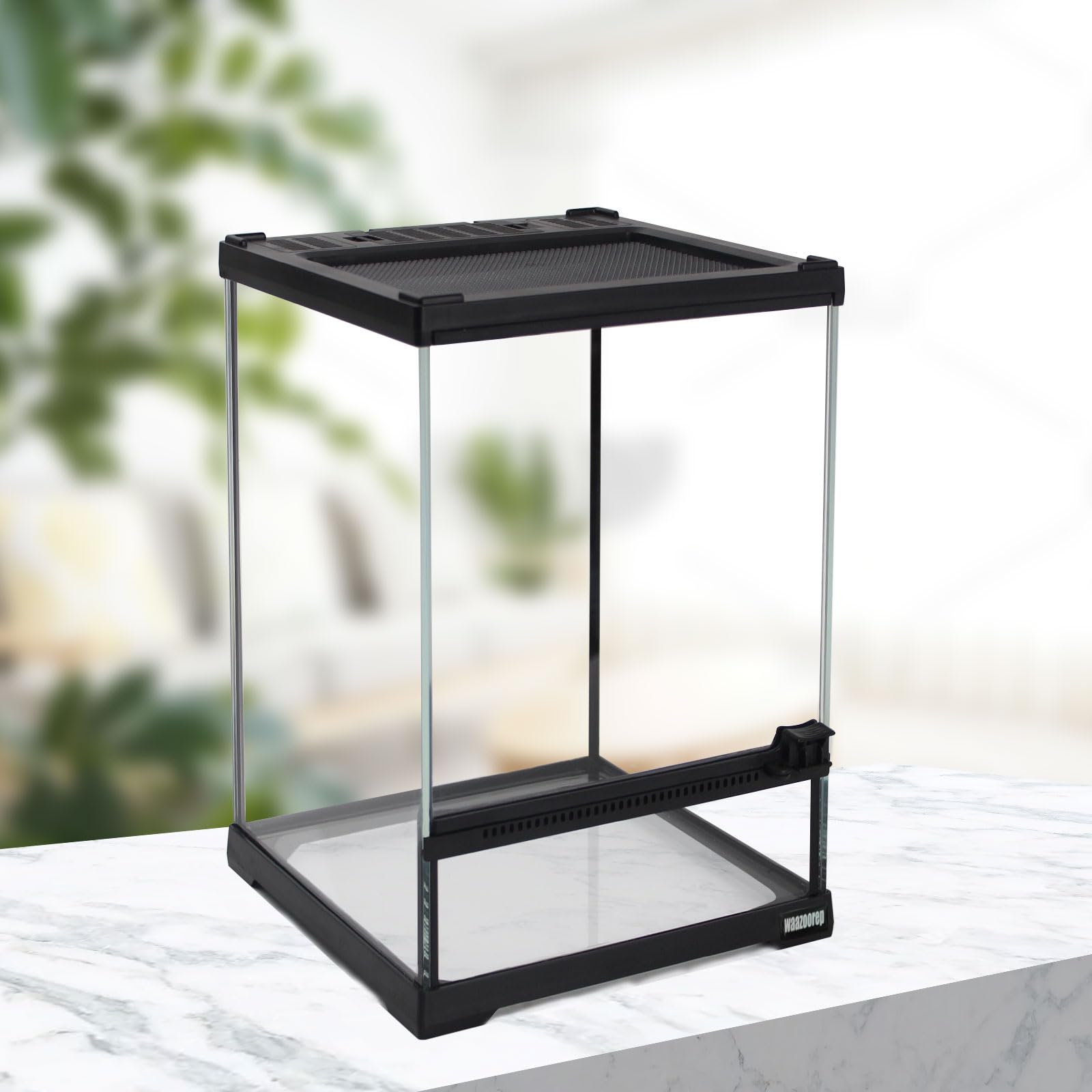 Das perfekte Zuhause für deine kleinen Reptilien! Dieses hochwertige Glasterrarium von PortoAlegre gibt es in zwei Größen: 20x20x30cm oder 25x25x35cm. Der schwarze Metallrahmen umgibt die großzügigen Glasflächen für uneingeschränkte Beobachtung deiner Tiere. Die Fronttür mit ausbruchsicherem Drehverschluss ermöglicht einfaches Füttern und Reinigen. Die Belüftungsöffnungen sorgen für optimales Klima, während die versiegelte Bodenwanne Feuchtigkeit speichert - ideal für tropische Arten. Perfekt für kleine Echsen, Frösche, Spinnen oder Insekten. Oben befindet sich eine Kabelöffnung für Wärmelampen oder Beleuchtung. Ein vielseitiges Terrarium, das sich an verschiedene Tierbedürfnisse anpassen lässt. Deine Tiere werden sich in diesem artgerechten Zuhause wohlfühlen!