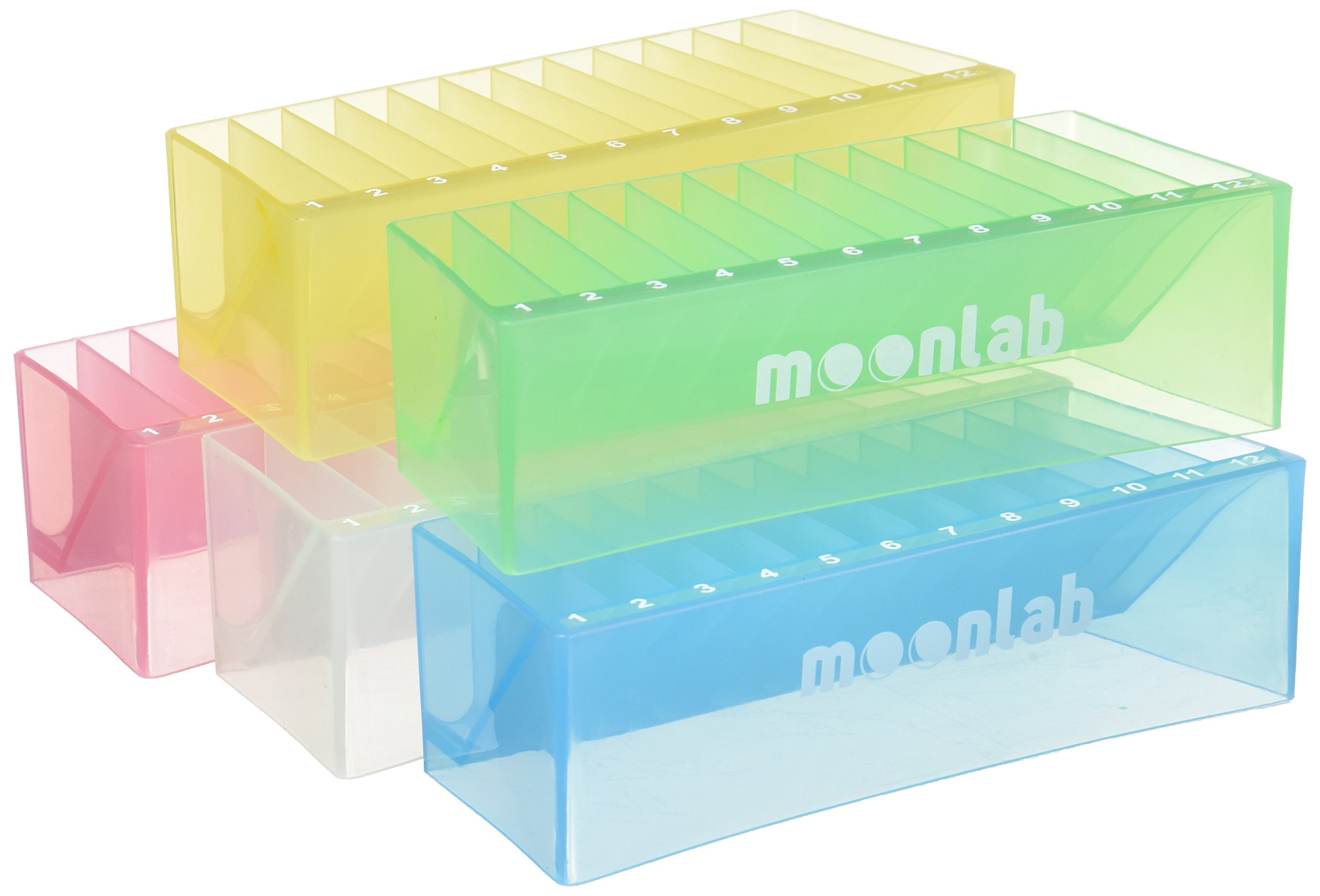 Perfekt fürs Labor! Dieses Moonlab Reagenz-Reservoir mit 55ml Fassungsvermögen und 12 Abteilen ist ein echter Allrounder für deine Laborarbeit. Das coole Feature: Du kannst es auf beiden Seiten befüllen - einmal als Becken, einmal mit den 12 einzelnen Kanälen. Super praktisch für Mehrkanalpipetten!\\n\\nAus robustem PVC gefertigt, ist das Reservoir langlebig und zuverlässig. Die bunten Farben (klar, blau, grün, rot, gelb) machen nicht nur was her, sondern helfen auch bei der Organisation im Labor. Im Pack bekommst du 50 Stück - damit bist du erstmal eingedeckt!\\n\\nEgal ob für Routine-Untersuchungen oder spezielle Forschungsprojekte - dieses Reservoir erleichtert dir die Arbeit ungemein. Einfach befüllen, pipettieren und loslegen! Die Handhabung ist total intuitiv und spart dir jede Menge Zeit. Ein Muss für jedes moderne Labor!