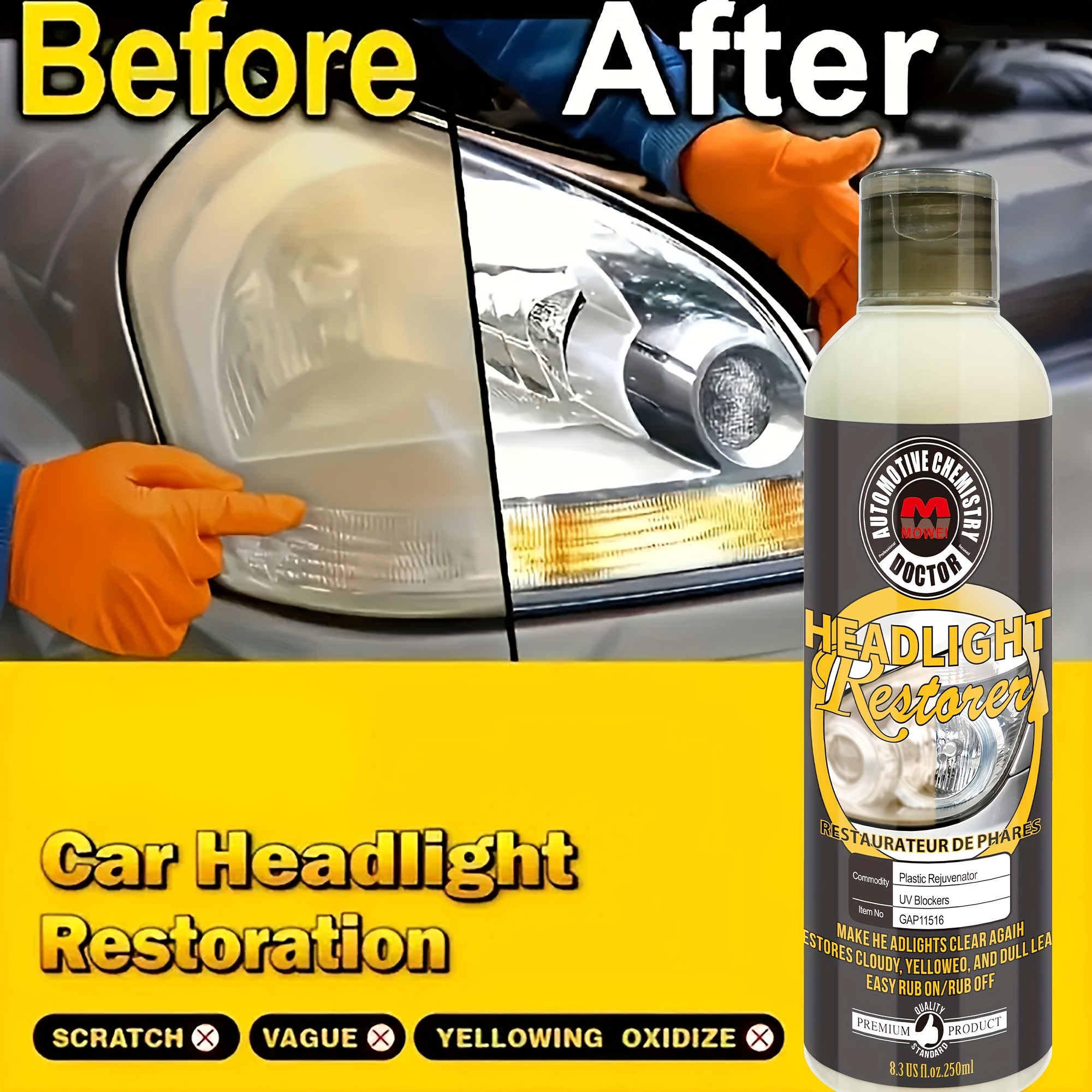 Siehst du nachts kaum noch was weil deine Scheinwerfer vergilbt und trüb sind? Dieses Restaurierungs-Set macht sie wieder klar wie neu - ganz ohne nerviges Schleifen!\\n\\nEinfache Anwendung in 3 Schritten:\\n1. Scheinwerfer gründlich reinigen\\n2. Spray gleichmäßig auftragen\\n3. 8 Minuten warten und abwischen - fertig!\\n\\nDas Spray arbeitet auf molekularer Ebene und entfernt:\\n- Vergilbungen durch UV-Strahlung\\n- Trübungen durch Umwelteinflüsse\\n- Oxidation und Mikrokratzer\\n\\nGleichzeitig bildet es eine Schutzschicht die neue Trübungen verhindert. Deine Scheinwerfer bleiben länger klar und du siehst nachts wieder besser.\\n\\nKompatibel mit fast allen Fahrzeugen:\\n- Für Plastik- und Glasscheinwerfer\\n- Alle gängigen Automarken\\n- Auch für Motorräder geeignet\\n\\nTechnische Daten:\\n- Inhalt: 180ml Spray\\n- Einfache Sprühanwendung\\n- Kein Schleifen nötig\\n- Bildet Schutzschicht\\n- Schnelle Wirkung in 8 Minuten\\n\\nSicherheit geht vor - mit klaren Scheinwerfern siehst du einfach besser! Und dein Auto sieht auch gleich viel gepflegter aus.\\n\\nWichtig: Vor der Anwendung unbedingt die Scheinwerfer gründlich reinigen und trocknen lassen.