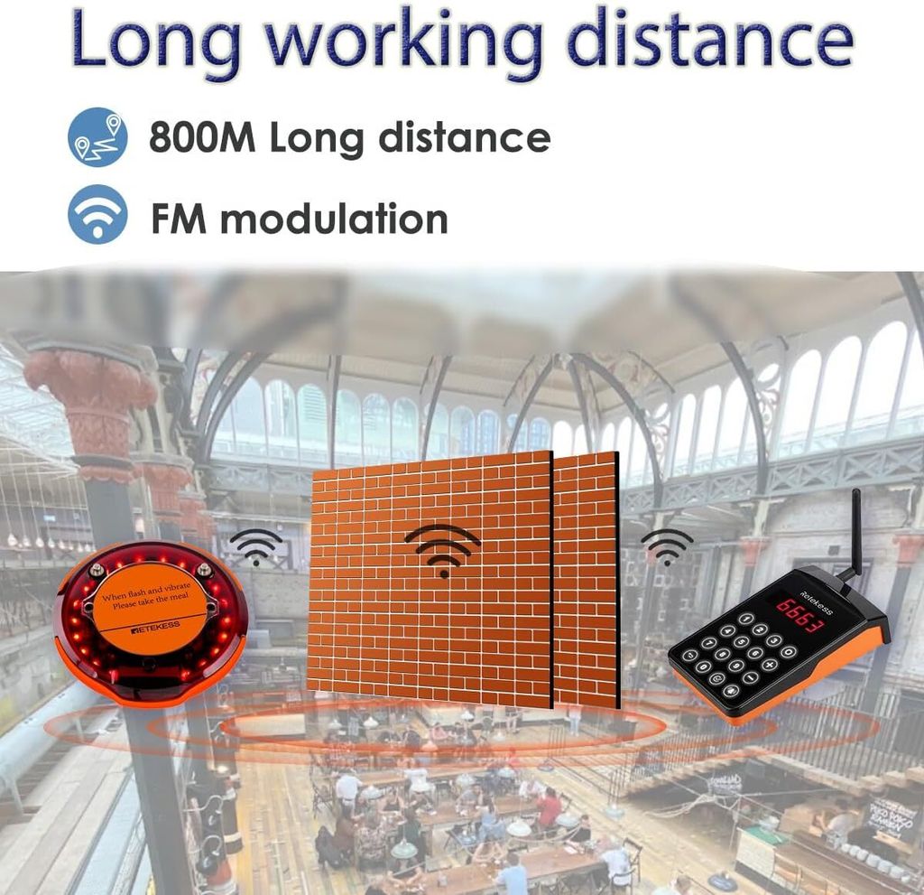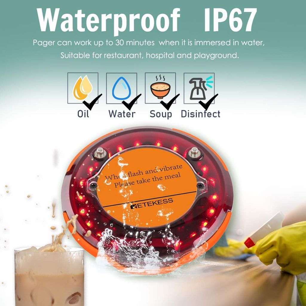 Du hast ein Restaurant, Café oder Hotel und suchst eine smarte Lösung, um Gäste diskret zu rufen? Das Retekess TD156 Pager-System ist dein neuer bester Freund! Mit satten 800 Metern Reichweite funktioniert der Empfang auch über größere Distanzen stabil. Die Pager sind IP66-wasserdicht und haben einen robusten Gummiring, der Stürze abfedert. Jeder Pager hat einen 500-mAh-Akku, der bis zu 48 Stunden durchhält. Du kannst zwischen 7 Alarmmodi wählen – Piepton, Vibration, Licht oder Kombis. Besonders praktisch: Der Service-Countdown und der „Außer-Reichweite“-Alarm, falls ein Gast den Pager mal vergisst. Das System ist auf bis zu 9998 Pager erweiterbar. Einfach einstellen, aufhängen und entspannt den Betrieb am Laufen halten!