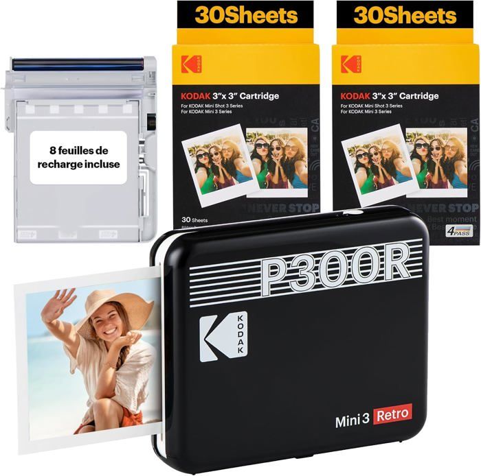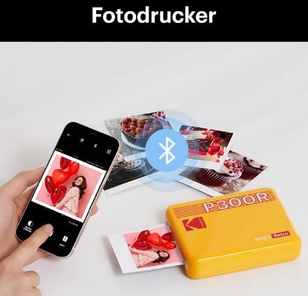 Deine Fotos sofort in der Hand - mit dem KODAK Mini 3 Retro Fotodrucker! Der coole, gelbe Drucker passt easy in jede Tasche und druckt deine Handy-Bilder in bester Qualität! Mit der 4PASS-Technologie und echter Tinte kriegst du lebendige Farben und langlebige Erinnerungen! Die Fotos sind laminiert - also wasser- und staubresistent! Per Bluetooth verbindest du dein Smartphone und druckst direkt aus der KODAK Photo Printer App! Du hast die Wahl zwischen klassischem Rahmen oder randlosem Design - gestalte deinen eigenen Stil! Und das beste: Du kriegst 7x mehr Fotos für dein Geld - unschlagbar günstig! Erstelle Collagen, erzähl Geschichten und erlebe deine Erinnerungen neu! Der Drucker verwendet 4PASS Tintenfolie und Fotopapier All-in-one Patronen - kompatibel nur mit 3x3 Zoll Kodak 4pass Patronen! Im Lieferumfang: Fotodrucker mit Bedienungsanleitung, Gurt und Anfangspatrone (8 Blatt)! Einfach die App im Google Play oder App Store downloaden und losdrucken! Perfect für Parties, Reisen oder einfach so - druck deine schönsten Momente sofort aus! Kodak Qualität zum kleinen Preis - was will man mehr?