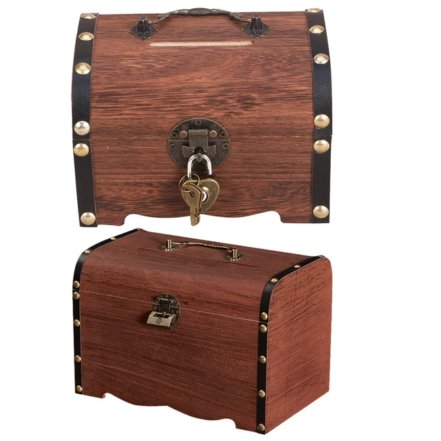 Wie aus einem Piratenfilm! Diese wunderschöne Retro-Spardose aus Holz (20x15x14,5 cm) ist nicht nur praktisch, sondern auch ein echter Hingucker. Mit robustem Schloss schützt sie deine Ersparnisse oder wertvollen Kleinigkeiten wie Schmuck vor neugierigen Blicken. Aus hochwertigem Naturholz gefertigt, stabil und langlebig. Perfekt für Münzen und Scheine - so lernst du oder deine Kinder spielend leicht das Sparen. Aber die Truhe kann noch mehr: Als stylische Deko im Regal, als Aufbewahrung für besondere Erinnerungsstücke oder einfach als hübscher Blickfang. Ein tolles Geschenk für Groß und Klein, das nicht nur gut aussieht, sondern auch praktisch ist. So macht Sparen richtig Spaß!