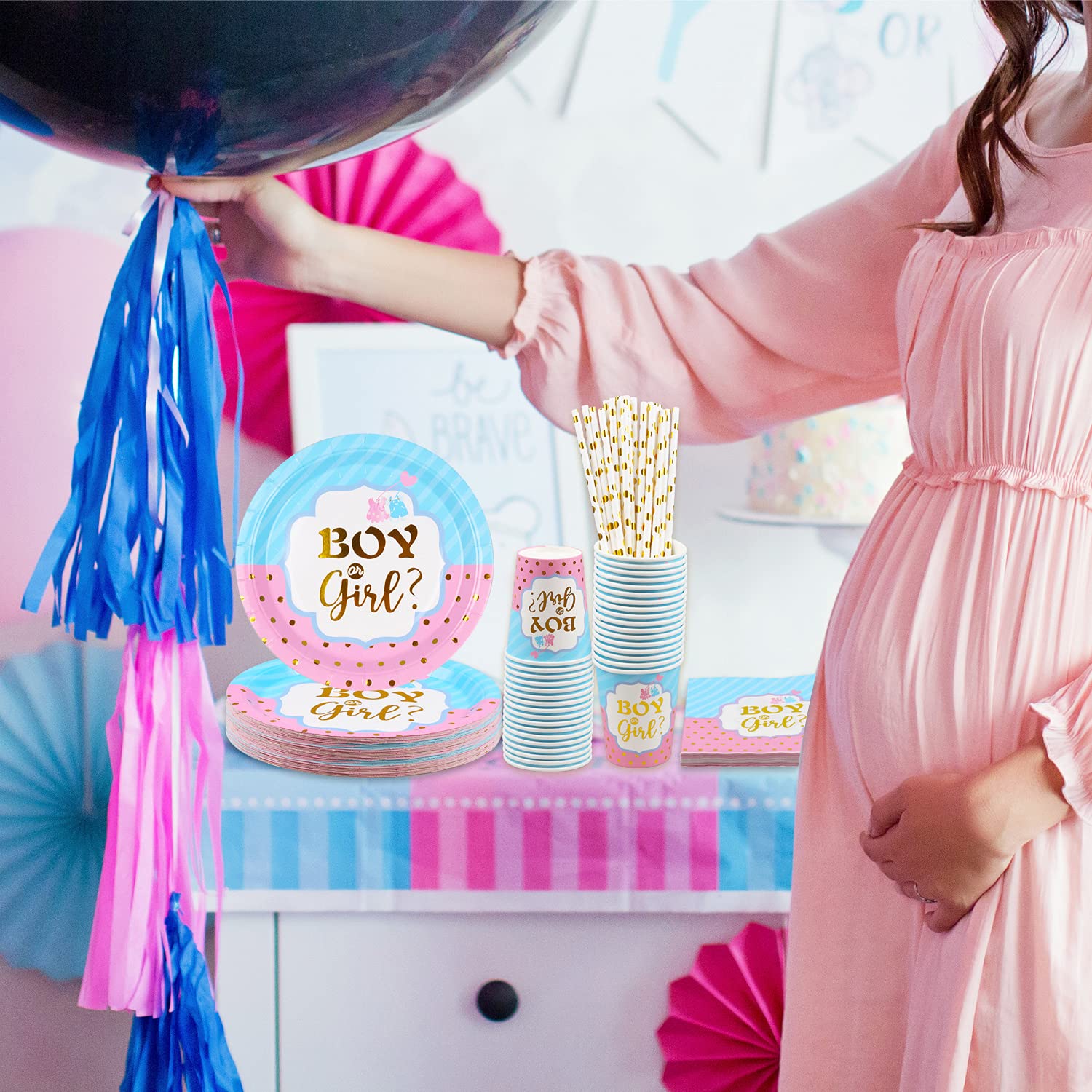 Heey, werdende Eltern! Dieses Fuwraixis Gender Reveal Party-Set ist perfekt für die große Enthüllung des Babygeschlechts. Das 61-teilige Set enthält alles für 20 Gäste: Teller, Becher, Servietten und eine Tischdecke - alles mit süßen \\\Junge oder Mädchen\\\-Motiven. Aus umweltfreundlichem, biologisch abbaubarem Papier gefertigt, ist es sicher für Kinder und Erwachsene. Einfach aufdecken und schon ist der Tisch festlich gedeckt - kein lästiges Spülen nach der Party! Perfekt nicht nur für Gender Reveals, sondern auch für Babypartys, Geburtstage oder andere Feste. Spart Zeit und Nerven - so kannst du dich voll auf deine Gäste konzentrieren!