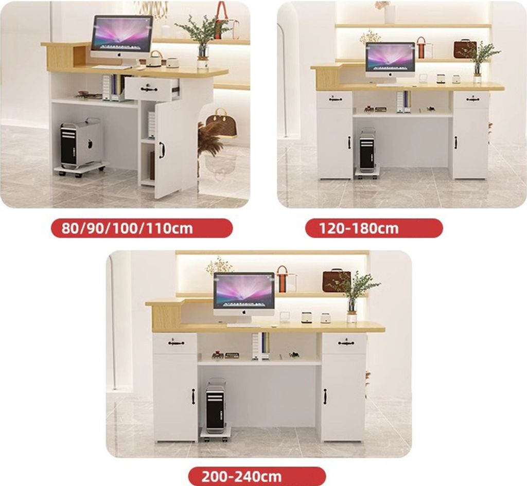 Professioneller Auftritt für dein Business! Dieser Empfangstresen macht jeden Kundenbesuch zum Erlebnis. Mit 60x40x92cm bietet er genug Platz für Computer, Kasse und Unterlagen. Die zwei abschließbaren Schubladen schützen deine Wertsachen und Dokumente. Aus hochwertiger E1-Platte - stabil, langlebig und pflegeleicht. Die gebogenen Ecken sehen nicht nur gut aus, sondern verhindern auch lästige Stoßstellen. Einfache Montage mit deutlicher Anleitung - auch für Einsteiger machbar. Erhältlich in mehreren Farben (Weiß, Rosa, Schwarz, Nussbaum, Braun, Marmor) für jeden Einrichtungsstil. Perfekt für Boutiquen, Salons, Büros oder Praxen. Mach deine Rezeption zum Blickfang!