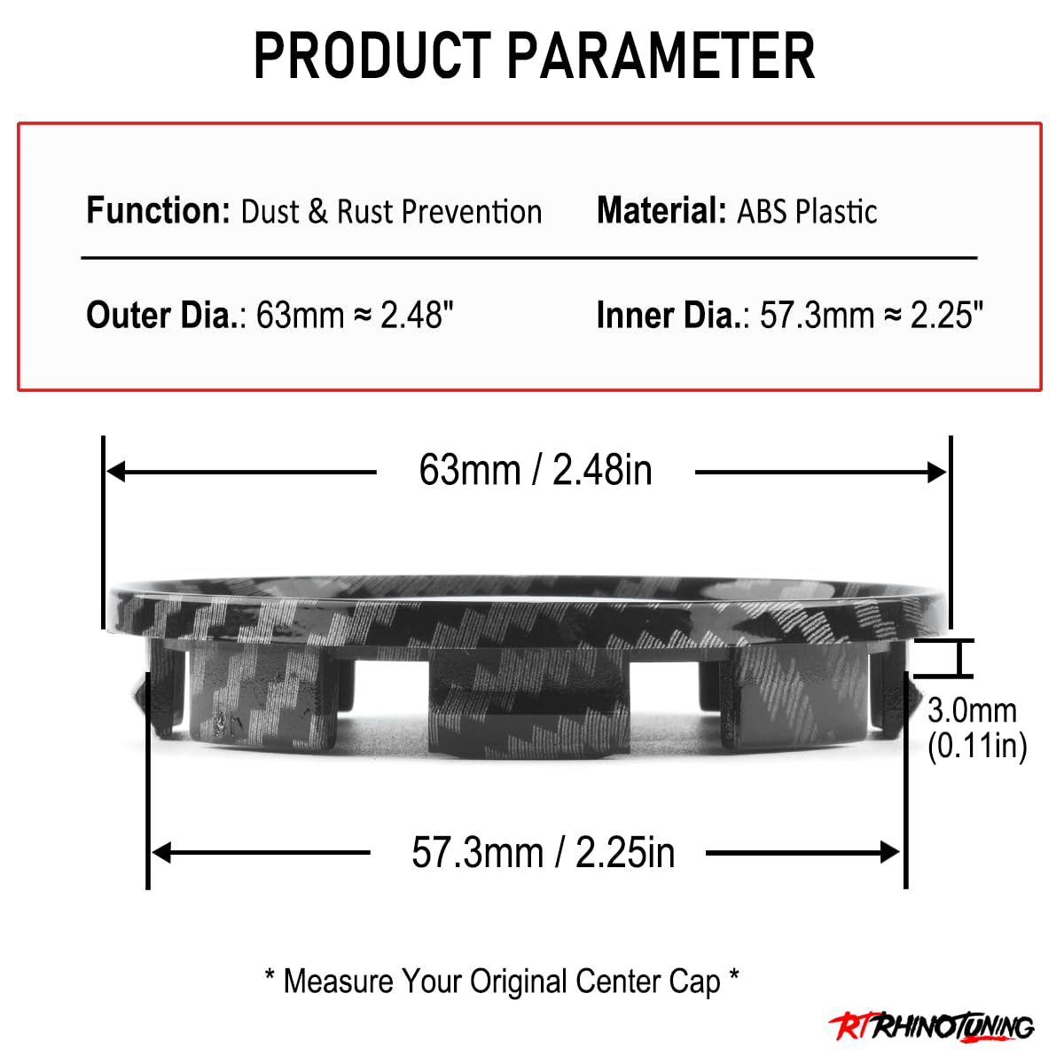 Mach deine Felgen wieder komplett! Diese 4 RhinoTuning Radnabenkappen in Schwarz passen perfekt für Subaru Legacy (2005-2018), Impreza (2002-2018), Forester (2004-2016), Outback (2006-2018) und viele weitere Modelle. Mit Außendurchmesser 63mm und Innendurchmesser 57,3mm - bitte vor dem Kauf deine alten Kappen messen! Hergestellt aus robustem ABS-Kunststoff, der kratzfest und leicht zu reinigen ist. Schützen deine Radnaben zuverlässig vor Staub, Schmutz und Steinschlag. Einfache Installation - alte Kappen entfernen, Stelle säubern und neue Kappen einfach einsetzen. Kompatibel mit originalen Teilenummern 52005732, 28821SA030 und anderen. Verleihen deinem Fahrzeug sofort ein gepflegteres Aussehen - schnell und ohne großen Aufwand!