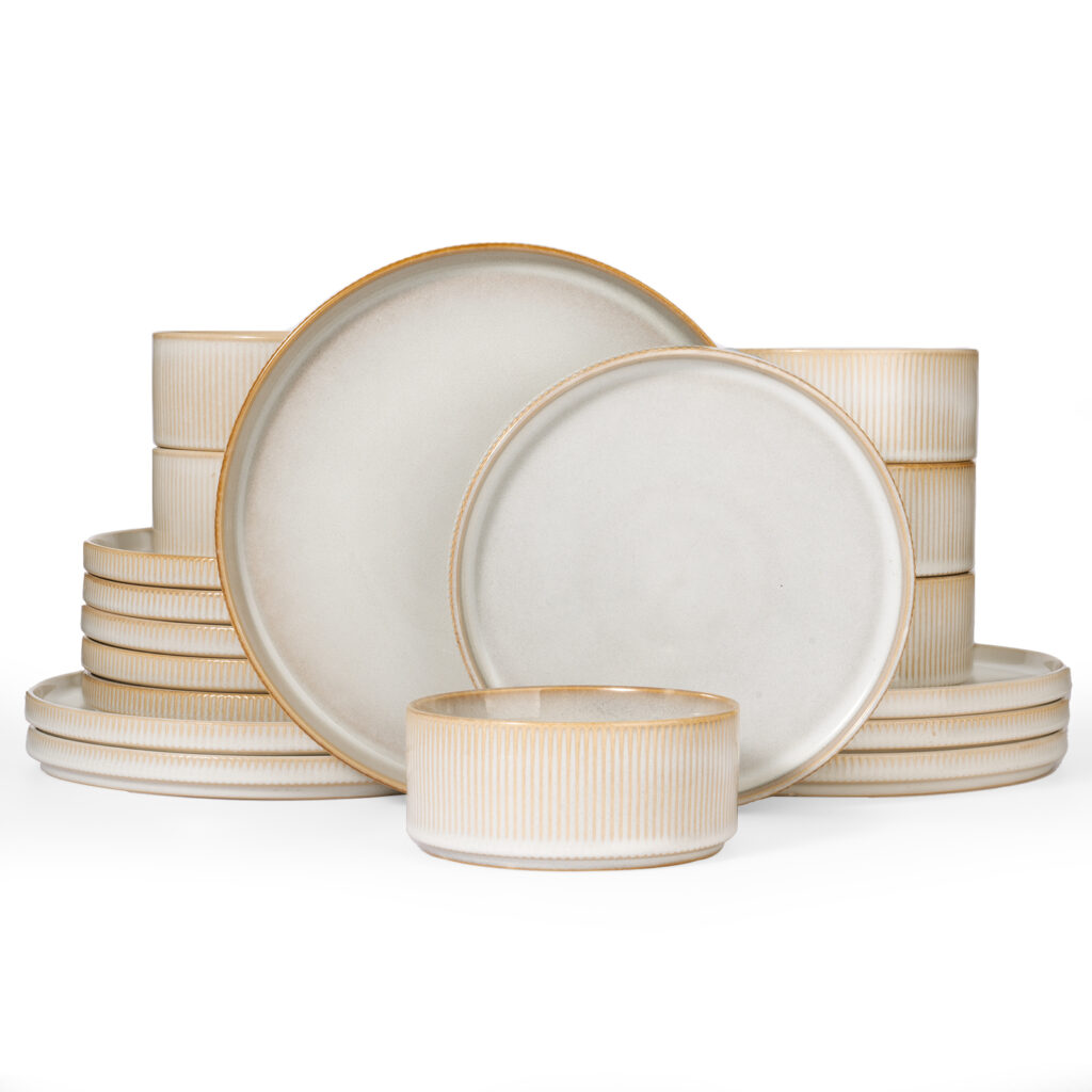 Wow, dieses Richmount Geschirrset ist einfach traumhaft! Mit 18 Teilen für 6 Personen hast du alles, was du brauchst: 6 Speiseteller (26cm), 6 Salatteller (20cm) und 6 Müslischalen (680ml). Das Starlight Design mit den gerippten Strukturen und der matten Oberfläche sieht einfach edel aus - perfekt für festliche Anlässe und den Alltag. Aus hochwertigem Steingut gefertigt, das bei 1282°C gebrannt wurde - also super robust gegen Kratzer und Abnutzung. Spülmaschinen- und mikrowellengeeignet, also mega praktisch in der Pflege. Die Teile sind stapelbar und sparen so Platz in der Küche. Einfach ein rundum gelungenes Set, das jeden Tisch aufwertet!