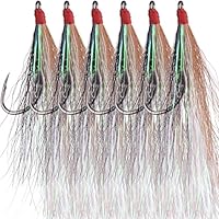 Klar gemacht zum Fangen! Diese 3 Angelköder-Rigs sind perfekt fürs Salzwasser-Angeln. Jedes Rig ist schon fertig montiert mit holografischem Lametta, goldenen Spalthaken und robustem Monofil-Vorfach. Die Bucktail-Teaser mit blinkendem Perl-Mylar reflektieren das Licht super - die Fische können einfach nicht widerstehen! Mit etwa 100 cm Hauptschnur und 5 cm Zweigschnur sind sie ideal für Flunder, Seebarsch, Heilbutt und viele andere Meeresfische. Einfach an deine Angelschnur binden, Blei dran und ab geht's! Die drei Farben Weiß, Rosa und Grün decken alle Wasserbedingungen ab - besonders in trübem Wasser sind Rosa und Grün unschlagbar. Kein lästiges Selbermontieren mehr - einfach auspacken und sofort losangeln!