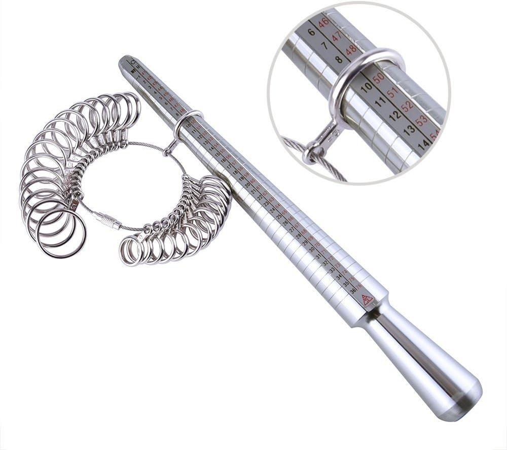 Perfekte Passform für jeden Ring! Dieser professionelle Ringmaß-Dorn aus Edelstahl ist das ideale Werkzeug für Juweliere, Goldschmiede und Hobby-Bastler. Mit Größen von 1 bis 33 (US Standard) findest du für jeden Finger die richtige Größe. Der 30 cm lange Stab liegt gut in der Hand und die klare Beschriftung macht das Ablesen super einfach. Inklusive Gummihammer - damit werden Ringe sicher und ohne Kratzer vergrößert oder angepasst. Aus korrosionsbeständigem Edelstahl für lange Haltbarkeit und präzise Ergebnisse. Messfehler von nur 0,1 mm für absolute Genauigkeit. Ob für die eigene Werkstatt, Reparaturen oder das Messen von Ringgrößen - dieses Set hat alles, was du brauchst. Einfach, zuverlässig und professionell!