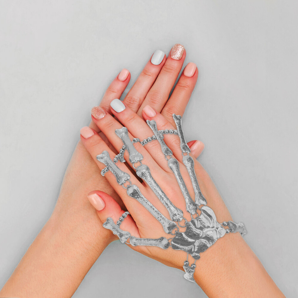 Zeig deine dunkle Seite! Dieses coole Gothic-Set mit Skelett-Handarmband und Krallenringen ist perfekt für alle, die es etwas ausgefallener mögen. Aus hochwertiger Legierung gefertigt, verstellbar für verschiedene Handgrößen. Ideal für Cosplay, Halloween-Partys, Konzerte oder einfach als tägliches Statement-Accessoire. Das roboterartige Design imitiert Handknochen und verleiht deinem Outfit sofort einen einzigartigen Punk-Charakter. Ob zu schwarzer Kleidung oder als Kontrast zu bunten Outfits - dieses Set macht immer eine gute Figur. Für alle, die sich nicht vor Individualität scheuen!