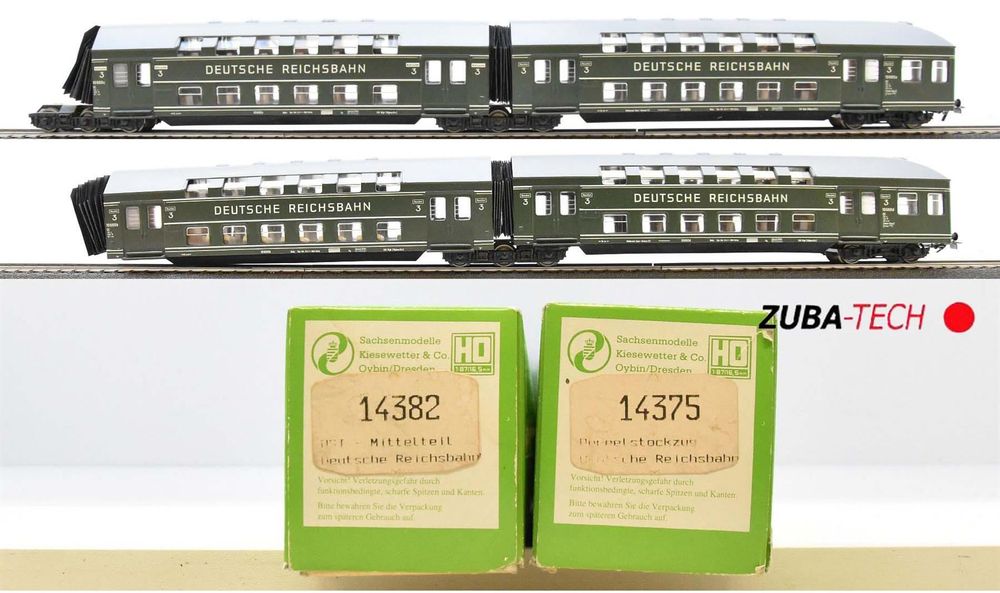 Wow, was für ein cooles Set für deine Modelleisenbahn! Diese 4 DR-Doppelstockwagen von Rivarossi im typischen blau-hellgrauen Design sind einfach der Hammer für jede Epoche IV-Anlage. Ohne Steuerkabine kannst du sie super als Mittelwagen in deinen Zug einbauen. Die Details sind absolut authentisch und die Qualität von Rivarossi spricht für sich - das Unternehmen steht seit Jahrzehnten für erstklassige Modelleisenbahn-Produkte. Im Maßstab 1:87 (H0) passen sie perfekt zu den meisten Anlagen. Ob als Erweiterung für deinen bestehenden Zug oder als Start für eine neue Komposition - diese Wagen machen einfach was her! Die Lackierung ist sauber ausgeführt und die Verarbeitung ist, wie man es von Rivarossi gewohnt ist, absolut top.