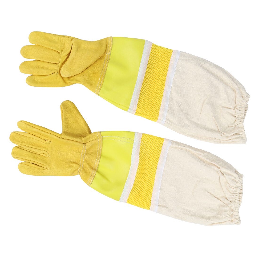 Ohje, wer gerne mit Bienen arbeitet, weiß wie wichtig guter Schutz ist! Diese Imkerhandschuhe aus Ziegenleder sind einfach perfekt für die Arbeit am Bienenstock. Mit stolzen 48 cm Länge schützen sie nicht nur die Hände, sondern auch die Unterarme - da kommt keine Biene durch! Die Handflächen sind aus robustem Ziegenleder gefertigt, das richtig was aushält und Bienenstiche zuverlässig abwehrt. Der Armbereich besteht aus atmungsaktivem Baumwoll-Canvas, sodass die Hände nicht so schnell schwitzen. Besonders clever: Die elastischen Bündchen am Handgelenk verhindern, dass Bienen in die Handschuhe krabbeln können. Die Handschuhe gibt's in Gelb und in Größe 2XL, passen also für die meisten Männer und Frauen. Die Verarbeitung ist richtig sauber - keine losen Fäden oder unsauberen Nähte. Ob du nun Honig erntest, Waben kontrollierst oder den Stock reinigst - mit diesen Handschuhen bist du sicher unterwegs. Übrigens nicht nur für Imker geeignet - auch für Gartenarbeit, Camping oder als allgemeine Schutzhandschuhe super praktisch. Ein unverzichtbares Utensil für jeden, der mit den fleißigen Bienchen zu tun hat!