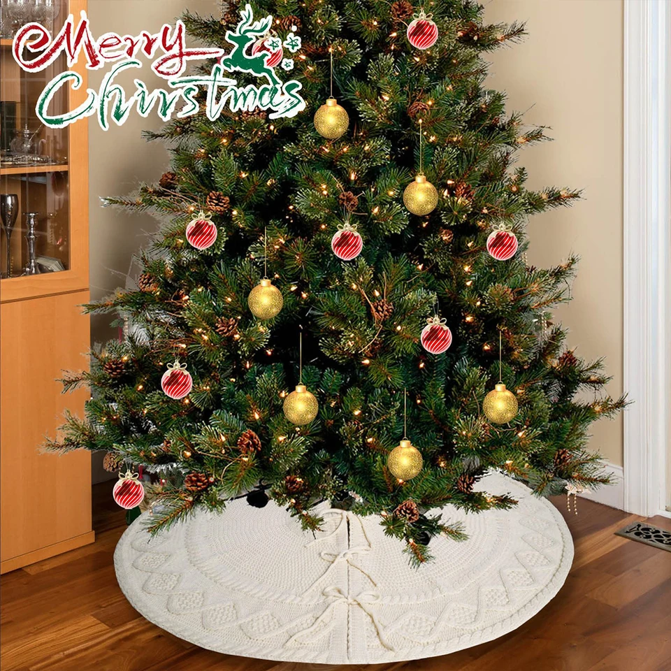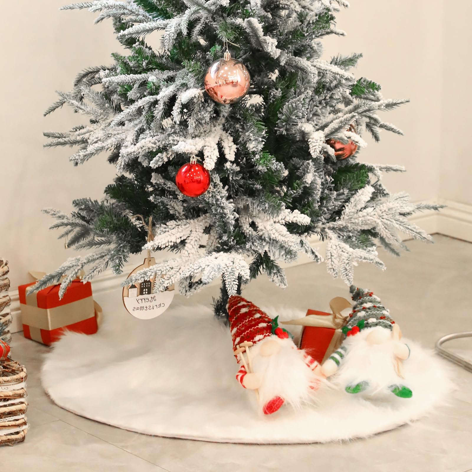 • POPOYU Weihnachtsbaum Rock 90cm Weiß - Weiche Baumdecke Mit Klettverschluss
