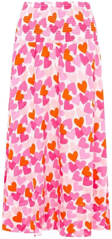 Total hübscher Rock mit Zwillingsherz-Muster! In bunten Farben und aus weicher Viskose. Der elastische Bund sitzt bequem und die Maxilänge macht ihn perfekt für den Boho-Look. Kann auch als Kleid getragen werden - einfach hochziehen und umstylen. Für Festivals, Urlaub oder einfach mal was Anderes im Alltag. Macht einfach gute Laune!