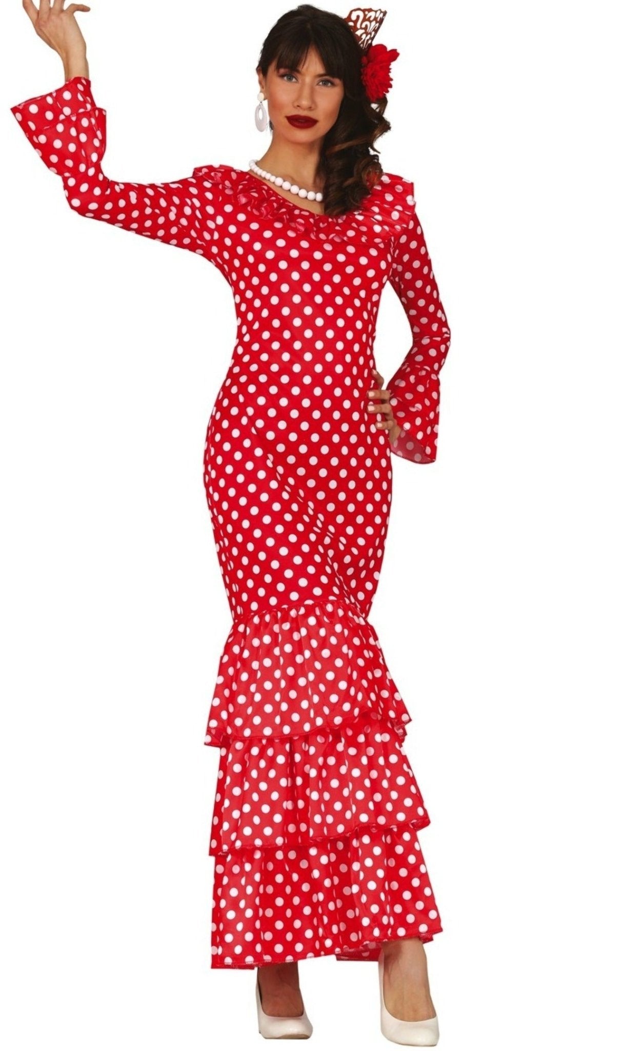 Olé! Dieser Flamenca-Rock von Partilandia bringt spanisches Flair in dein Leben! Perfekt für Tanzaufführungen, Feste oder die April-Messe. Der Rock hat wunderschöne Volants und ein peppiges Punktemuster in den Farben Rot, Schwarz und Weiß. Erhältlich in Größen S bis XXL - für jede Dame die passende Größe. Das Material fällt super weich und bewegt sich elegant beim Tanzen. Ob als Flamenco-Kostüm, Sevillano-Outfit oder einfach als stylischer Sommerrock - er macht immer eine gute Figur! Ideal für Tanzunterricht, Auftritte oder besondere Anlässe. Einfach anziehen, drehen und den Kopf verdrehen lassen! Der Rock ist gut verarbeitet und die Volants sitzen perfekt. Ein Must-have für alle Tanzbegeisterten und die, die es noch werden wollen!