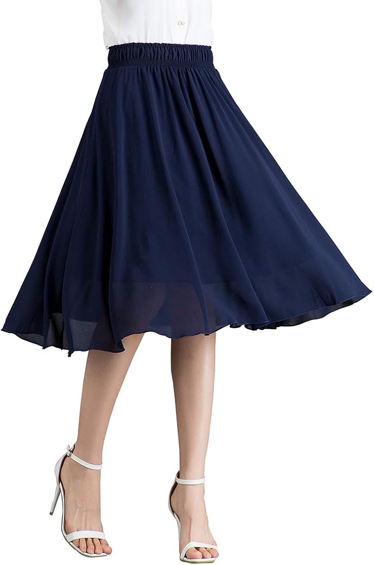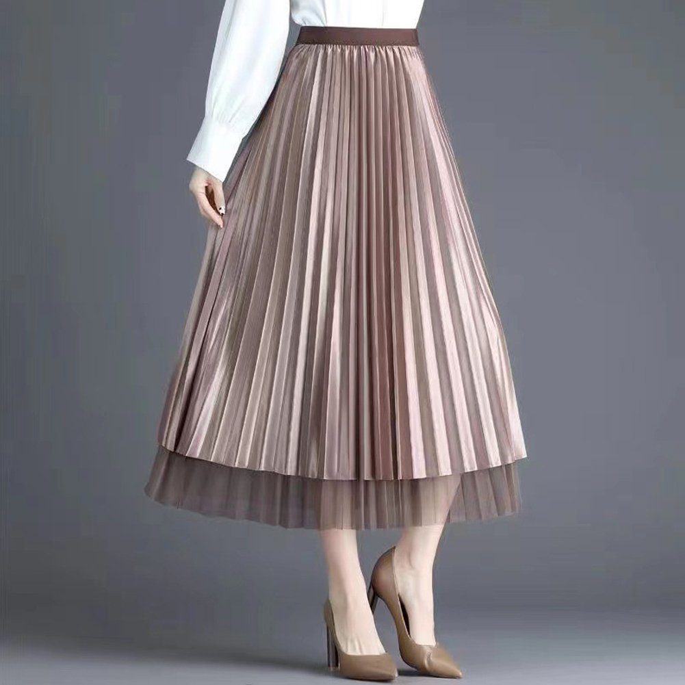 • Damen Midi-Rock Mit Falten - Lässiger Hochtaille Rock