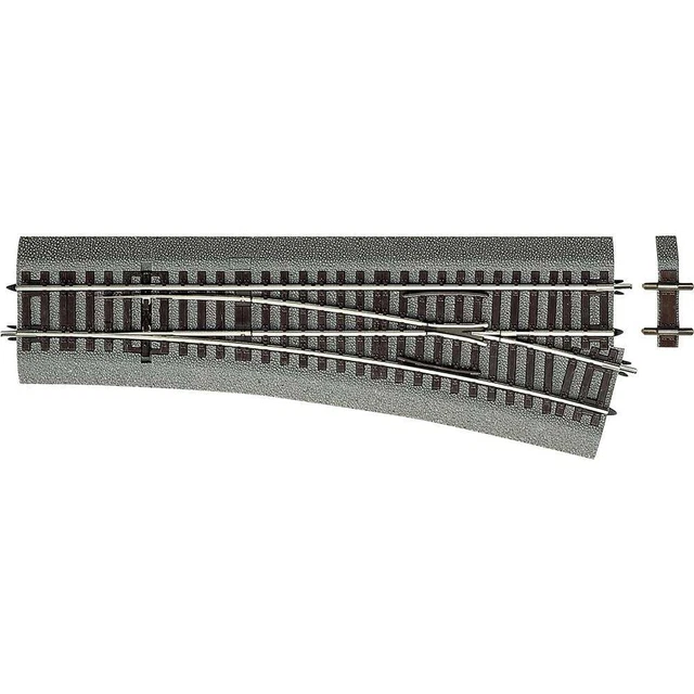 Diese Weiche rechts mit 230 mm Länge ist ein absolutes Highlight für jede Anlage. Mit dem 2,1 mm Schienenprofil und den festen Steckverbindungen im Böschungssockel baut ihr im Nu eine stabile Strecke auf - ob auf dem Teppich, Fußboden oder der festen Anlage.