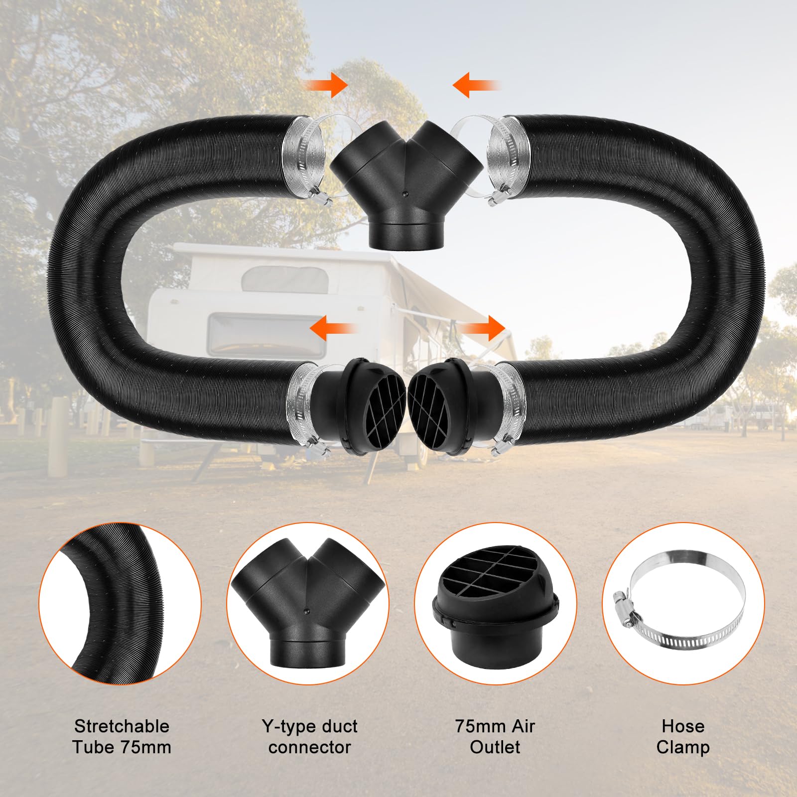 Perfekte Wärmeverteilung für dein Wohnmobil! Dieses 75mm Y-Rohr teilt den Warmluftstrom deiner Diesel-Standheizung effizient auf. Mit zwei regelbaren Ventilen kannst du die Luftmenge für jede Seite individuell einstellen - oder eine Seite komplett schließen. Das komplette Set enthält 2x Heizkanäle aus Aluminiumfolie (dehnbar von 50 auf 100cm), 2x Heizlüfter, 1x Y-Stück und 4x Schlauchschellen für sicheren Halt. Einfache Montage - die Lüfter lassen sich 360° drehen für gezielte Wärmeverteilung. Kompatibel mit 75mm Warmluftkanälen von Eberspächer, Webasto, Propex und ähnlichen Systemen. Ideal für 2KW, 5KW und 8KW Diesel-Luftheizungen in Wohnmobilen, Campern oder Garagen. Das hitzebeständige Material sorgt für lange Lebensdauer und optimale Leistung. Besonders praktisch: Du kannst unterschiedliche Bereiche individuell beheizen - etwa den Wohnbereich stärker als den Schlafbereich. So schaffst du ein perfektes Raumklima auch bei frostigen Temperaturen. Ein Muss für jede Winterausrüstung!