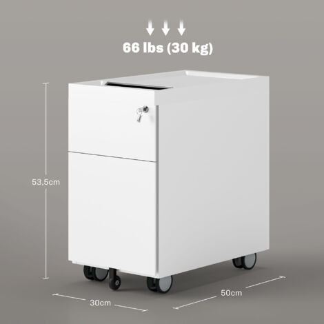 Mit den feststellbaren Rollen schiebst du ihn einfach unter den Schreibtisch oder wherever du ihn brauchst. Aus stabilem MDF in cleanem Weiß mit hübschen Holzknöpfen als Griffe sieht er richtig gut aus.