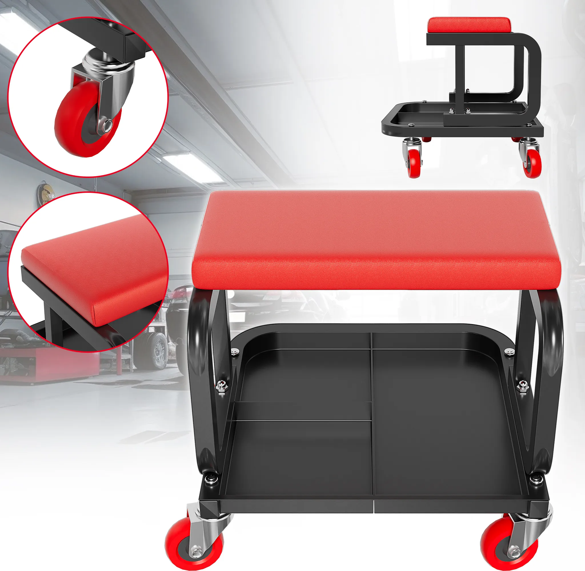 • VEVOR Werkstatthocker Mit Rollen - Höhenverstellbarer Garagenstuhl 136kg
