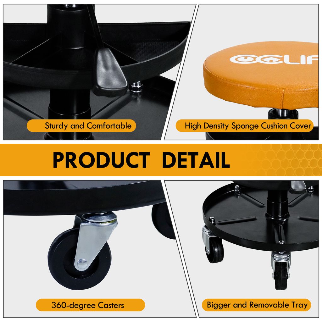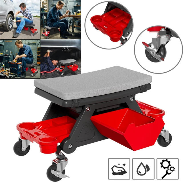 • Wiltec Werkstatthocker Mit Rollen - Rollsitz Bis 150kg Mit Werkzeugablage