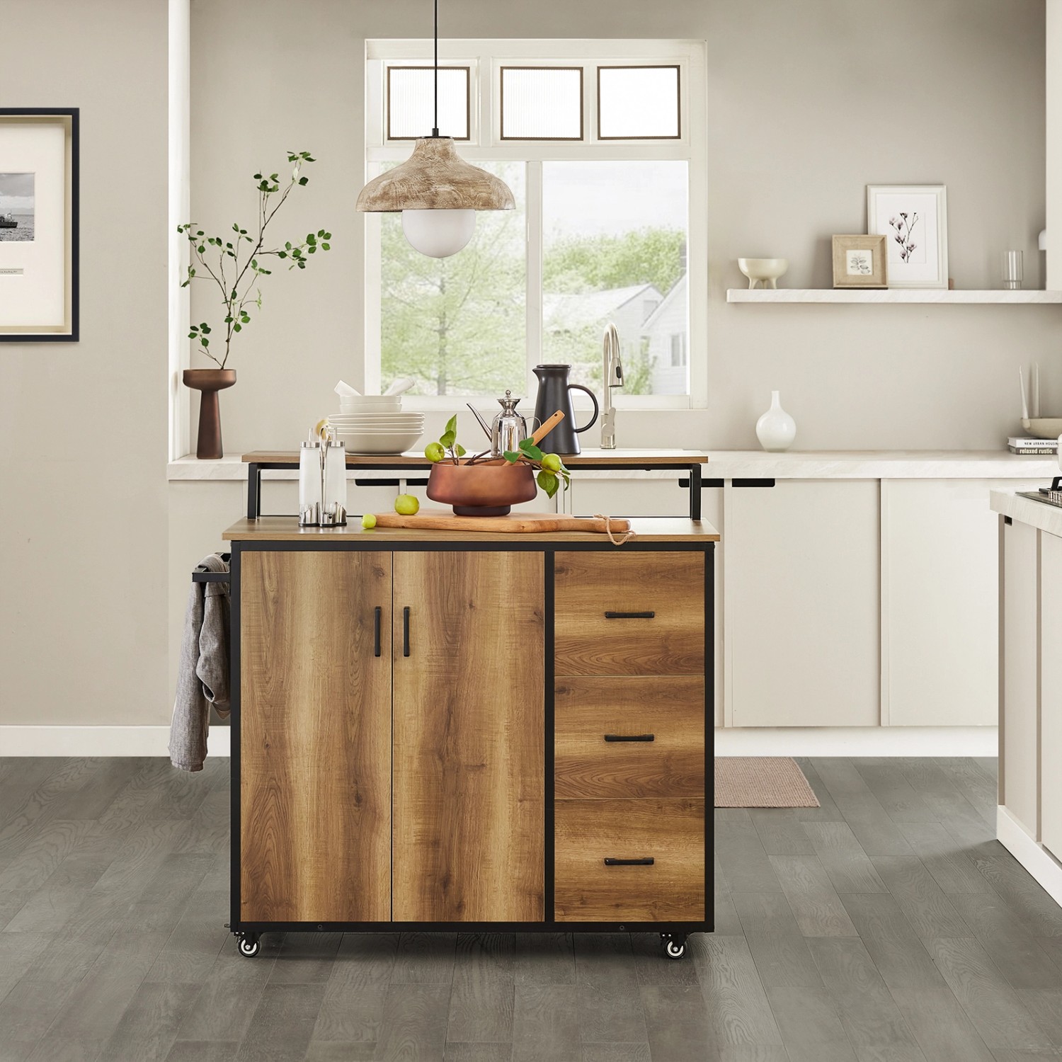 Wow, diese Kücheninsel ist ja richtig vielseitig! Mit 134cm Länge und 89cm Höhe bietet sie richtig viel Stauraum und Arbeitsfläche. Das coole Feature: Sie hat versteckte Rollen - 2 feststellbare und 3 schwenkbare - also kannst du sie einfach wegschieben, wenn du mehr Platz brauchst. Die Holzmaserung der Arbeitsplatte sieht richtig edel aus und die Metallgriffe geben dem ganzen einen modernen Touch. Die Regale sind höhenverstellbar, also passt du sie einfach deinen Bedürfnissen an. Ob als zusätzliche Arbeitsfläche in der Küche, als Frühstücksinsel oder Servierwagen - diese Insel macht einfach alles mit. Aus Metall und MDF gefertigt, trägt sie bis zu 60kg. In 30 Minuten aufgebaut und schon bereit für den Einsatz!