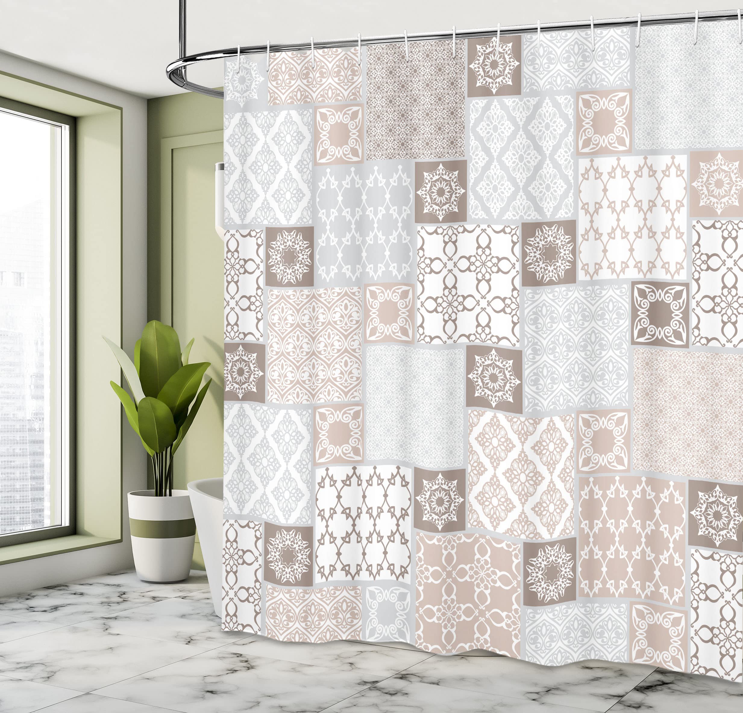 Aus hochwertigem Polyester gefertigt, ist der Vorhang nicht nur stylisch, sondern auch super praktisch: wasserabweisend (kein zusätzlicher Liner nötig!), maschinenwaschbar und mit verstärkten Nähten für maximale Haltbarkeit.