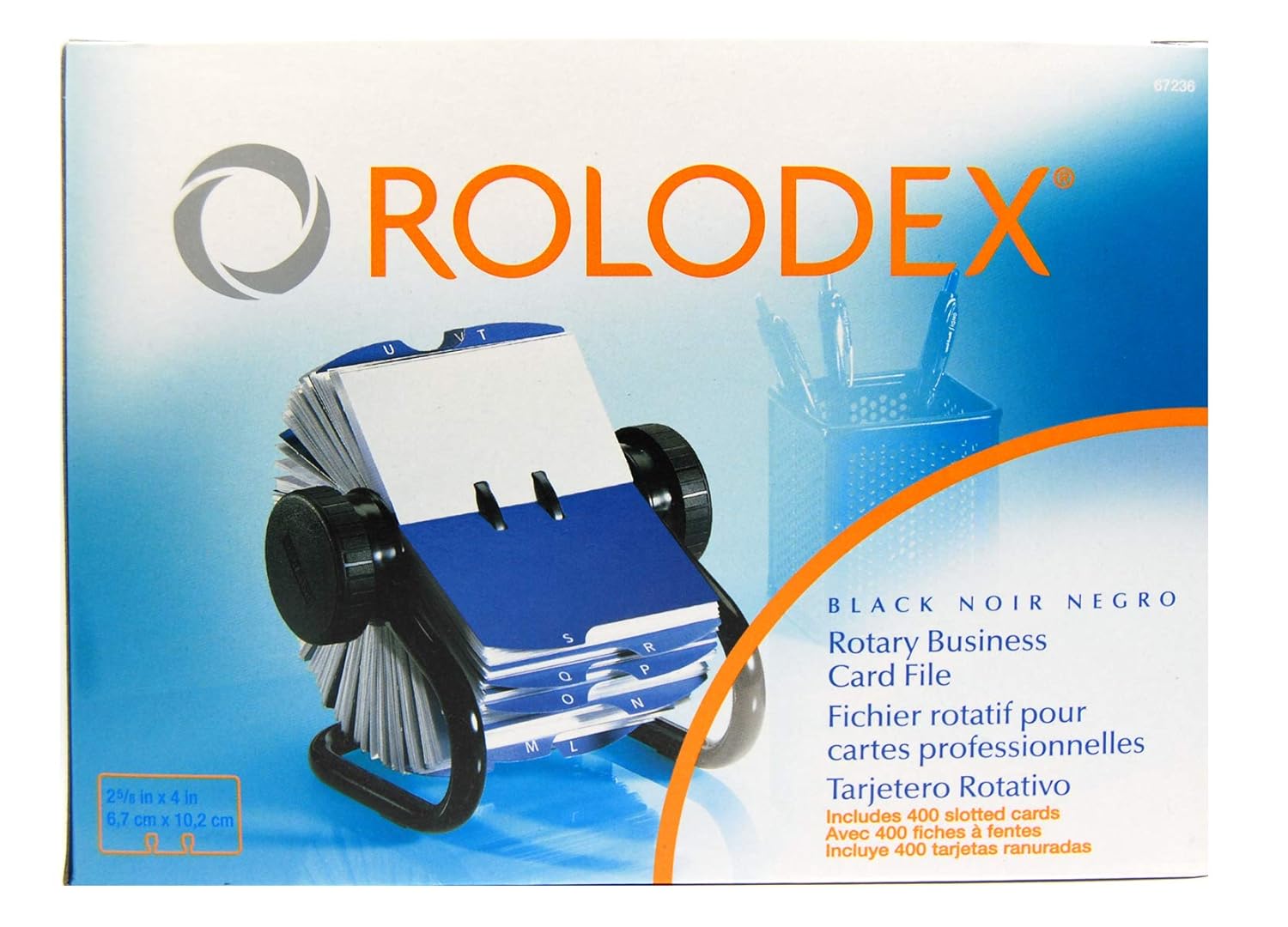 Hey, die gute alte Rolodex Rollkartei - jetzt auch für dein Büro! Dieses klassische Modell in Schwarz kommt mit 200 Karten in 67x102mm Größe, perfekt für Visitenkarten. Mit den praktischen Visitenkartenhüllen kannst du je zwei Karten unterbringen - super organisiert! Der Stahlrohrständer ist stabil und die Maße von 170x140x175mm passen auf jeden Schreibtisch. Perfekt, um Kontakte, Termine oder wichtige Notizen immer griffbereit zu haben. Einfach die Karten beschriften und rein - schon hast du deine eigene kleine Datenbank. Ob fürs Home-Office oder den Firmenschreibtisch - mit der Rolodex behältst du den Überblick. Ein echter Klassiker, der einfach funktioniert und nie aus der Mode kommt. Einfach praktisch und effektiv - so mag man das!
