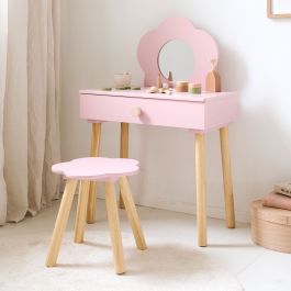 Träumst du von deinem eigenen Beauty-Bereich? Mit diesem niedlichen Schminktisch von Little Dutch wird der Kinderzimmer-Traum wahr! In zartem Rosa und komplett aus Holz gefertigt, ist er total stabil und langlebig. Der dreiteilige Spiegel zeigt dir von allen Seiten, wie toll du aussiehst. In den geräumigen Schubladen hast du Platz für deine ganzen Schmink-Sachen, Haarklammern und Schmuck. Der dazu passende Hocker mit süßen Blumen ist perfekt zum Draufsitzen. Inklusive sechs Holz-Schönheitsartikeln zum Spielen - von Lippenstift bis Pinsel. Ab 3 Jahren geeignet und ideal für Rollenspiele. Ob Prinzessin, Fee oder Popstar - hier fühlst du dich wie im Beauty-Salon! 💄👑✨ Produktdetails: • Material: 100% Holz, robust und kindersicher • Farbe: Rosa mit Blumen-Dekor • Maße: 87x52x26,5 cm (HxBxT) • Inkl.: Dreiteiliger Spiegel, 6 Holz-Schminkutensilien, Hocker • Altersempfehlung: Ab 3 Jahren • Förderung von Kreativität und Rollenspiel