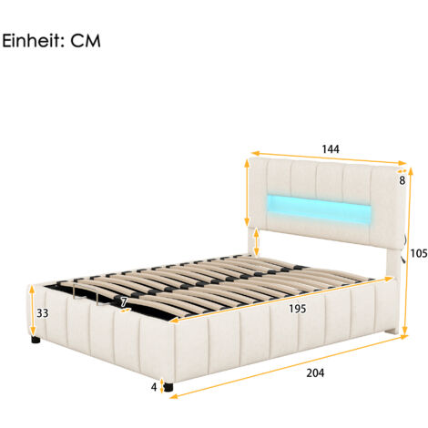 Das Rosebibi Polsterbett ist mehr als nur ein Bett - es ist ein richtiges Wohlfühl-Möbelstück! Maße 146 x 220 x 110 cm für ne 140x200 cm Matratze (nicht inklusive). Bezug aus weichem Samt in Grau. Das kopfteil hat rautenförmige Knopfknoten und integrierte LED-Leisten mit über 60.000 Farben - steuerbar per App oder Fernbedienung. Sogar im Musikrhythmus blinken ist möglich! An jeder Seite USB + Typ-C Ladestationen zum bequemen Aufladen. Hydraulischer Stauraum unter dem Bett bietet extra Platz. Bis 300 kg belastbar, Eisenstangen stabilisieren die Matratze. Montage nötig, aber mit beschrifteten Teilen und Anleitung einfach machbar. Wird in 2 Paketen geliefert. Modern, funktional und mega stylisch - damit schläfst du wie auf Wolken!